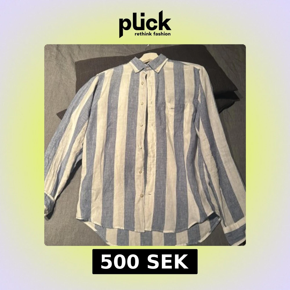 Snygg skjorta från GANT i linne med breda vertikala ränder i blått och vitt. Klassisk krage, bröstficka med broderad logga och knäppning framtill. Perfekt för en chill och stilren look.