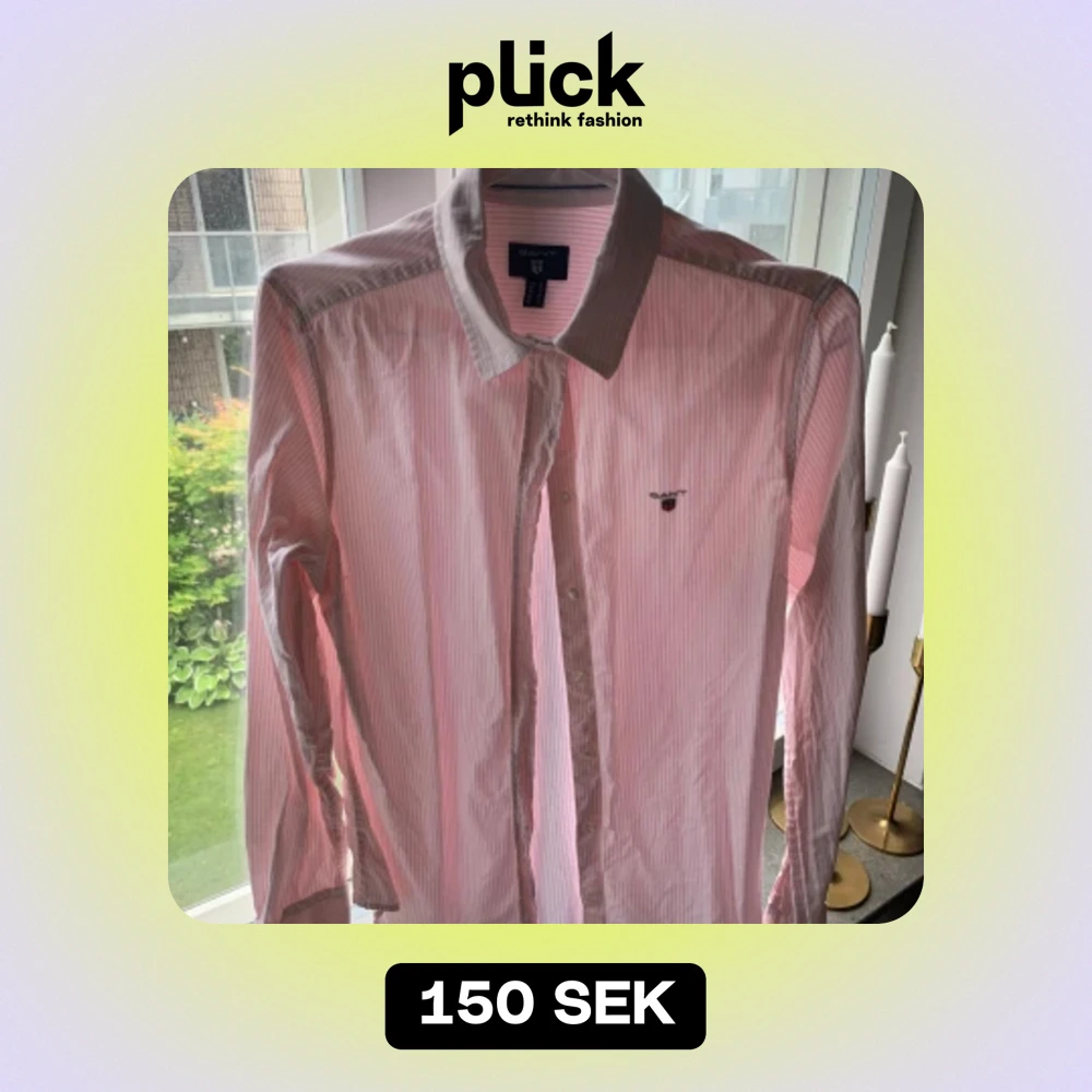 En stilren rosa randig skjorta från GANT med en klassisk krage och långa ärmar. Skjortan har knappar framtill och en liten broderad logotyp på bröstet.