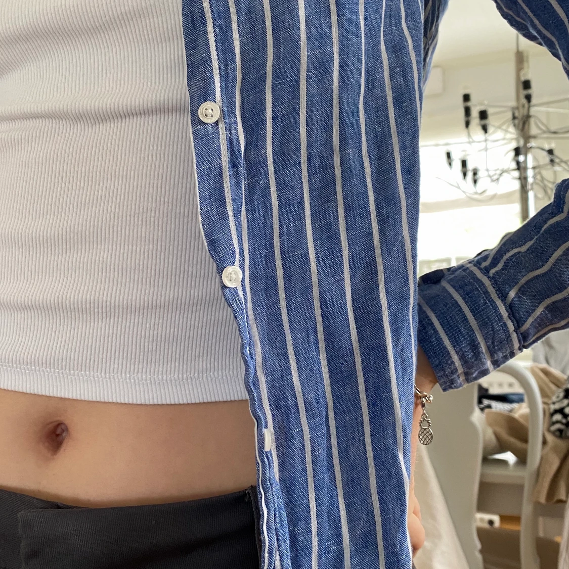 Randig linneskjorta, sparsamt använd💙🦋