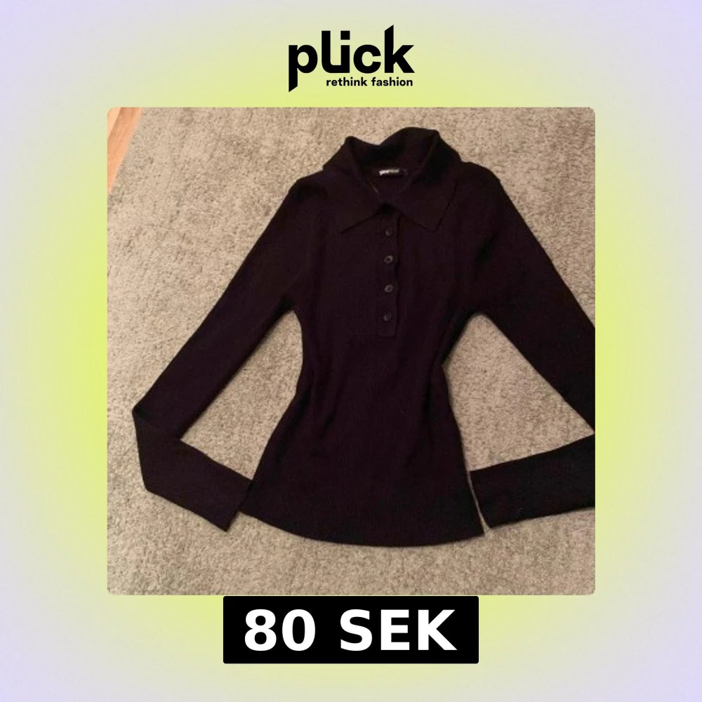 Svart långärmad tröja från Gina Tricot med fin krage och knappar❤️ I storlek S men passar mindre storlekar också❤️ tröjan är ganska elastisk men sitter tajt ändå när man väl har på den!