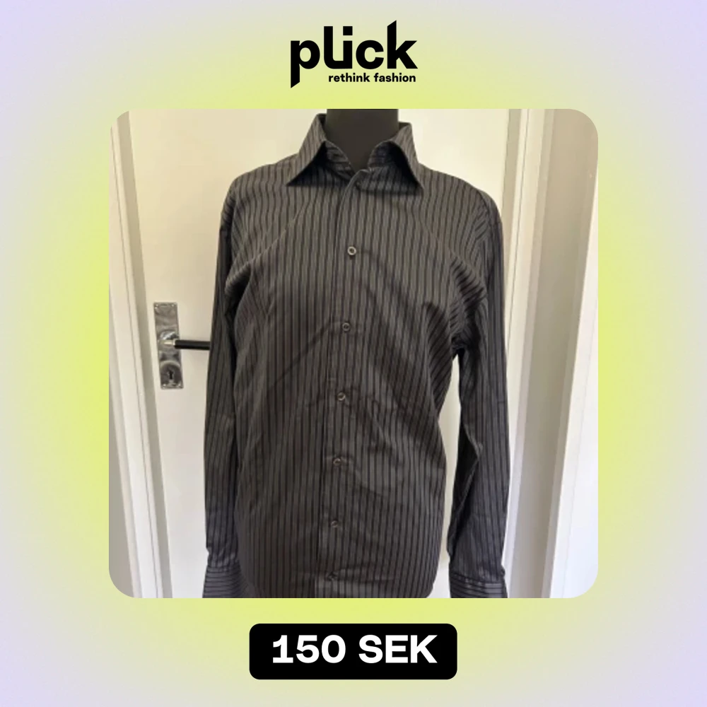 Säljer en stilren svart och grå randig skjorta med långa ärmar. Skjortan är perfekt för både formella och avslappnade tillfällen. Materialet känns bekvämt och passar bra till hösten och vintern