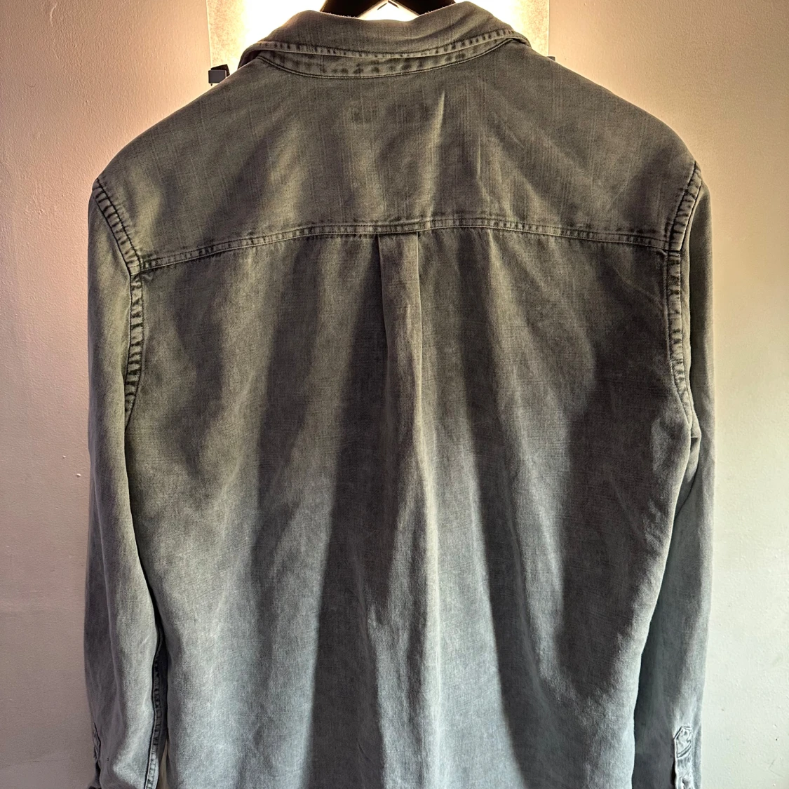 Snygg grå jeansskjorta från Zara med klassisk krage och knappar framtill. Skjortan har en bröstficka och långa ärmar, perfekt för en avslappnad stil. Passar bra till både jeans och chinos.