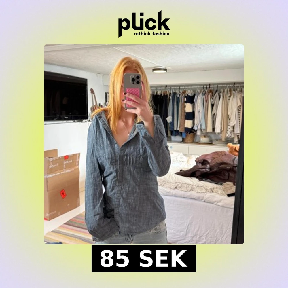 Säljer en grå långärmad skjorta i tunn bomull med diskret rutigt mönster. Skjortan har knappar framtill, lätt v-ringad hals och veckade detaljer vid bröstet. Perfekt till jeans för en chill och stilren look.