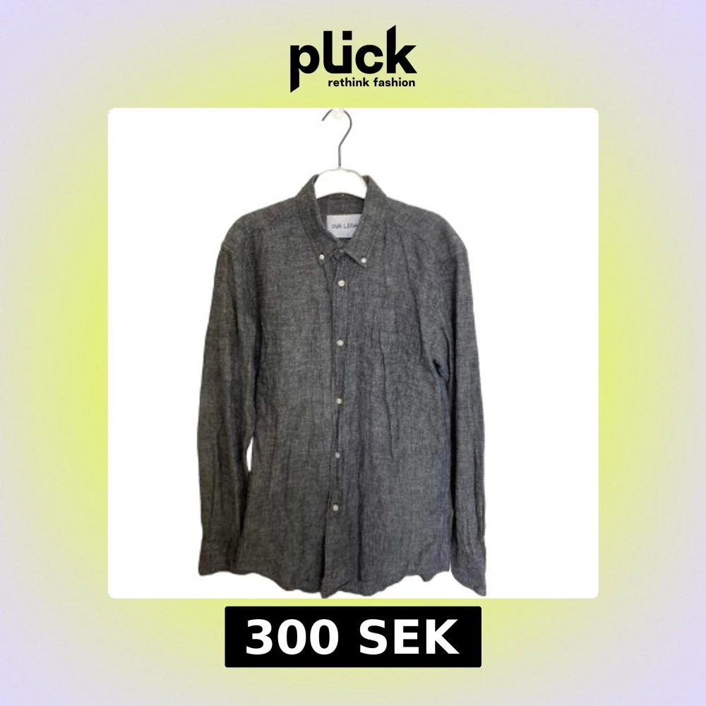 Snygg grå skjorta från Our Legacy i linne med klassisk krage, bröstficka och vita knappar. Skjortan har lång ärm och en avslappnad passform, perfekt för en stilren look. Nypris cirka 2000.