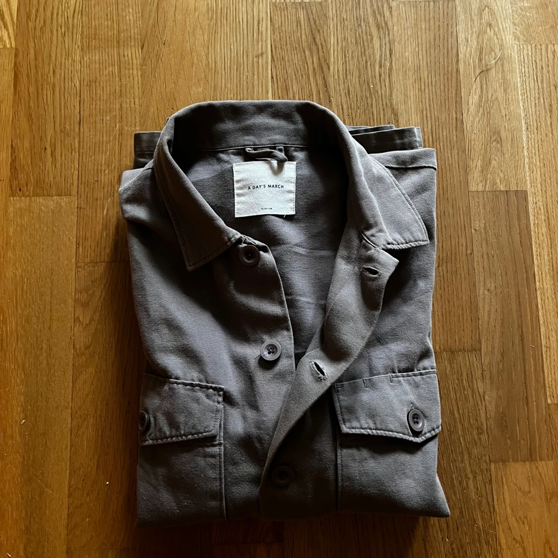 Snygg grå overshirt från A Day's March med klassisk krage och stora bröstfickor med knappar. Skjortan är tillverkad i ett kraftigare bomullstyg och har en stilren, minimalistisk look som passar perfekt till lager-på-lager.