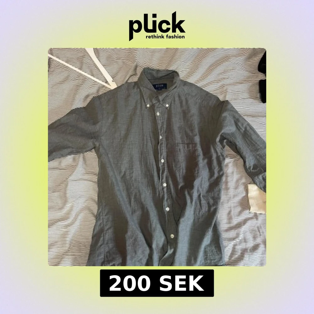 Säljer en stilren grå skjorta från Eton i storlek M. Skjortan har en klassisk design med knappar framtill och en bröstficka. Perfekt för en elegant look.