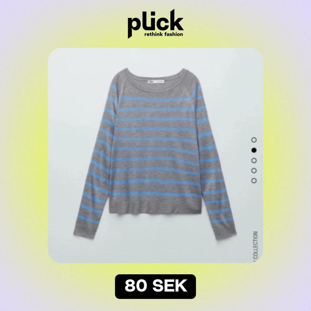 Säljer denna blågrå randiga tröja från zara, endast använd vid några få tillfällen och i mycket bra skick. Storlek M men skulle säga S