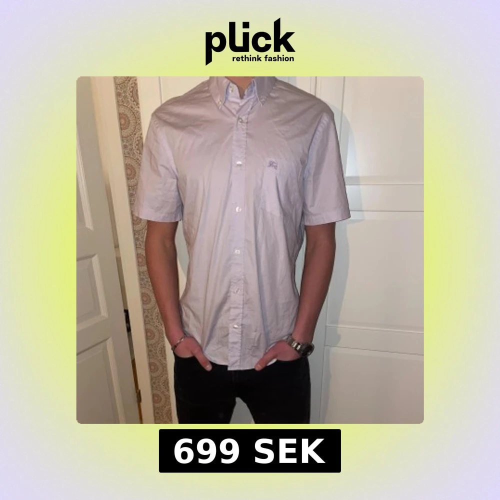 Snygg ljuslila skjorta från Burberry med korta ärmar och klassisk krage med rutigt mönster på insidan. Skjortan har knappar framtill och en diskret logga på bröstet. Skjortan är i bra skick (pris kan diskuteras).
