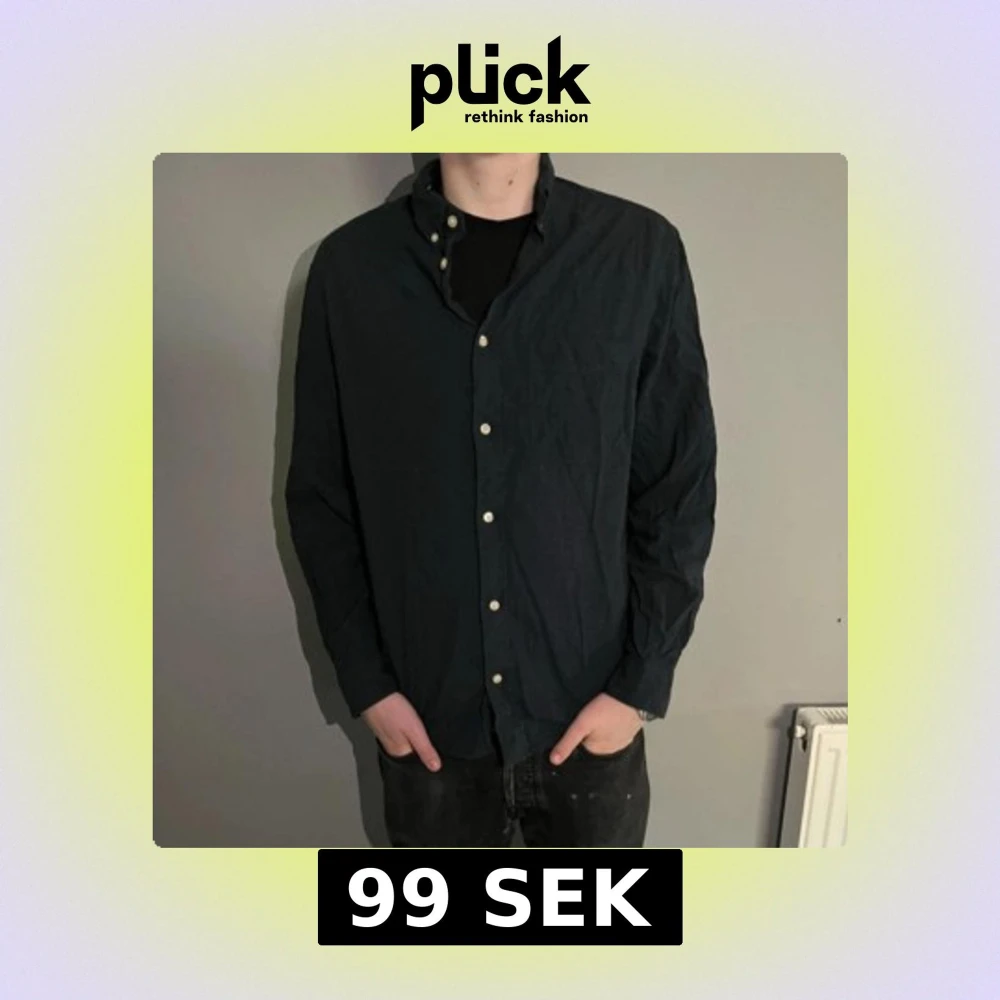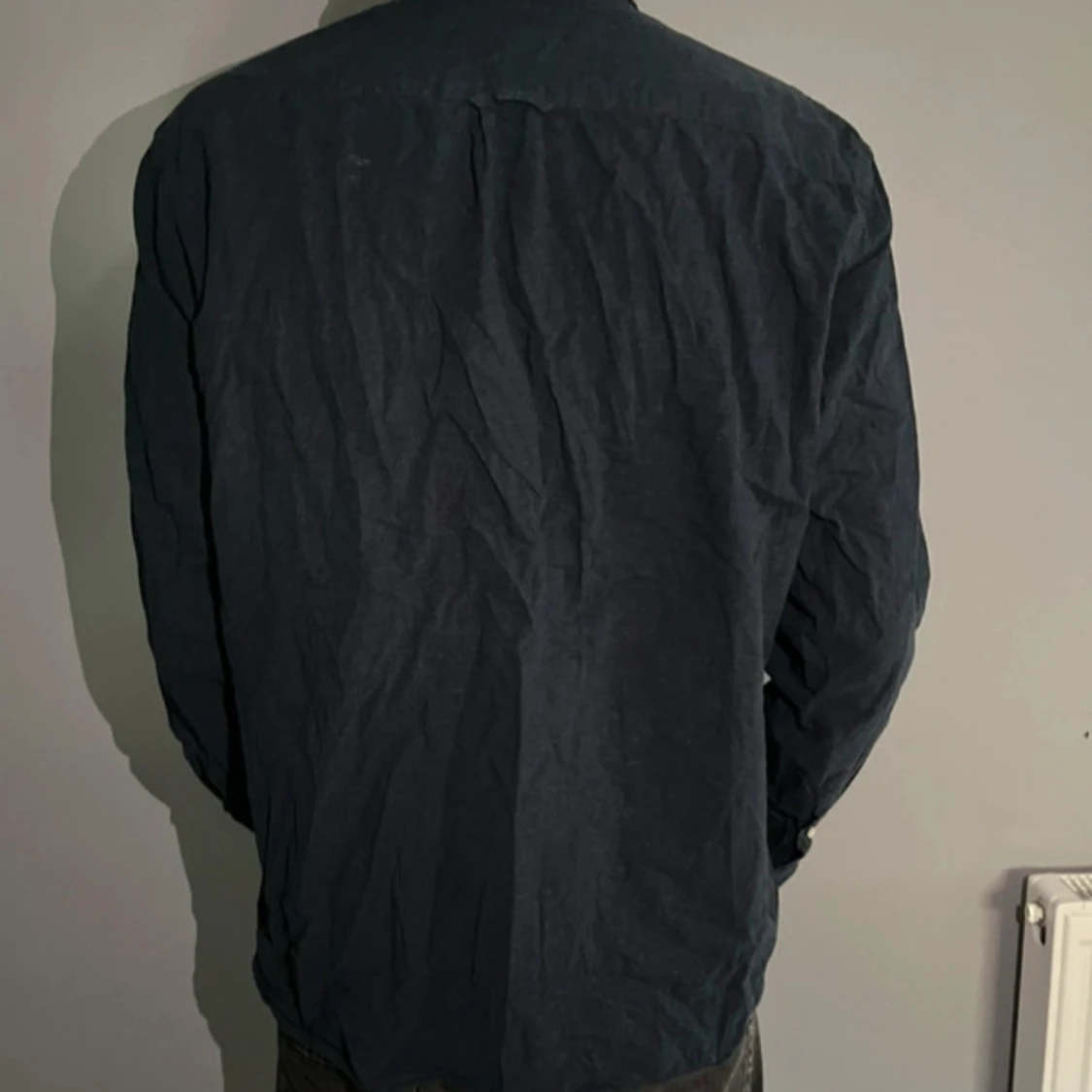 Stilig mörkblå skjorta från H&M! Storleken är L men passar som M. Modellen på bilden är 182cm lång. Vid frågor hör av er:)