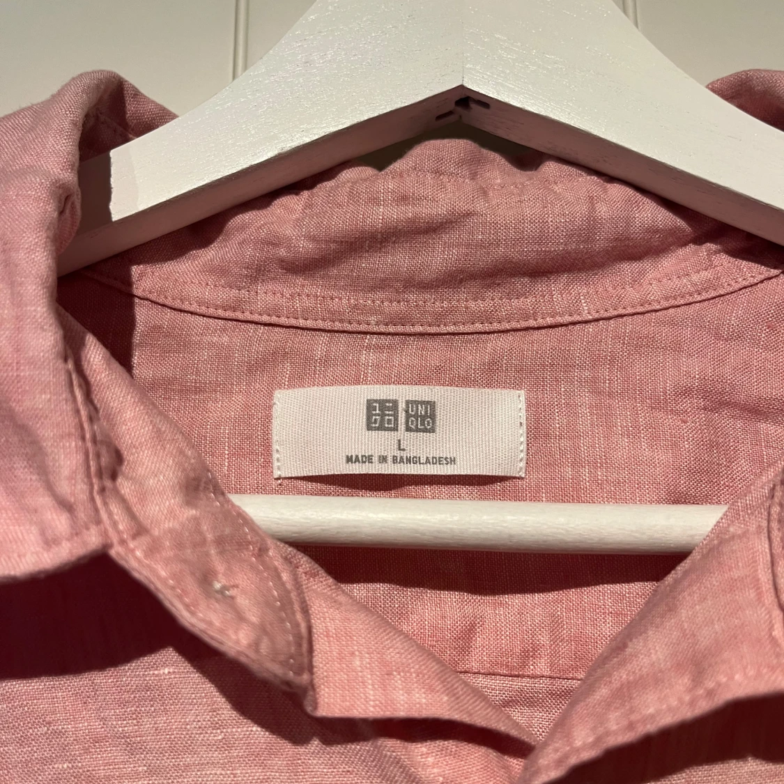 Säljer en snygg rosa linneskjorta från Uniqlo. Väldigt luftig skjorta i premium linne. Stryker du skjortan är den så gott som ny. Nypris 600:-