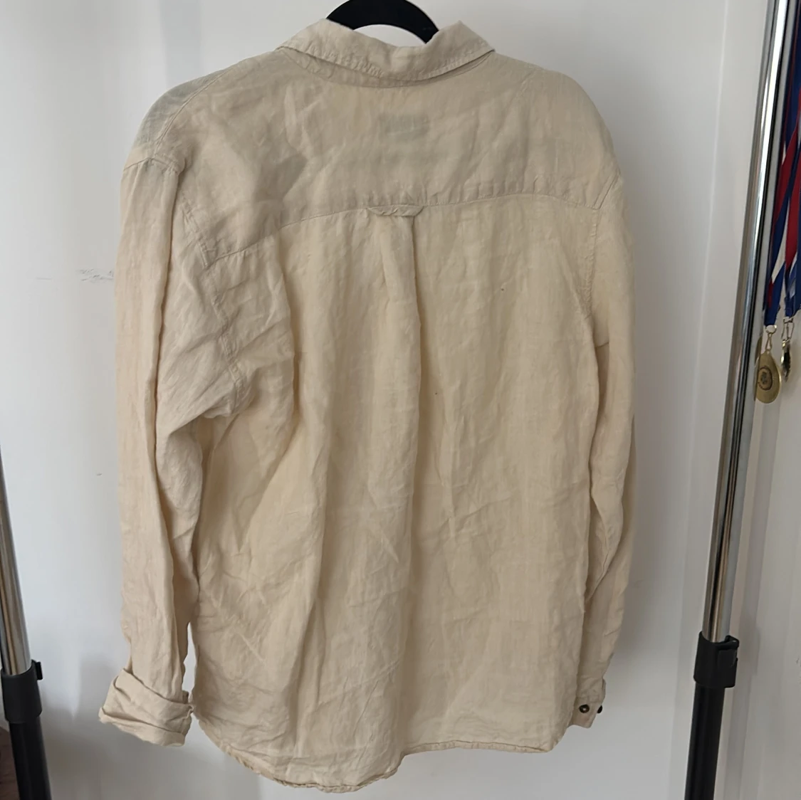 Snygg beige skjorta från Studio Total i luftig linnemix. Klassisk krage, bröstficka och knappar framtill. Perfekt för dig som gillar en avslappnad och stilren look. Långärmad modell med normal passform.