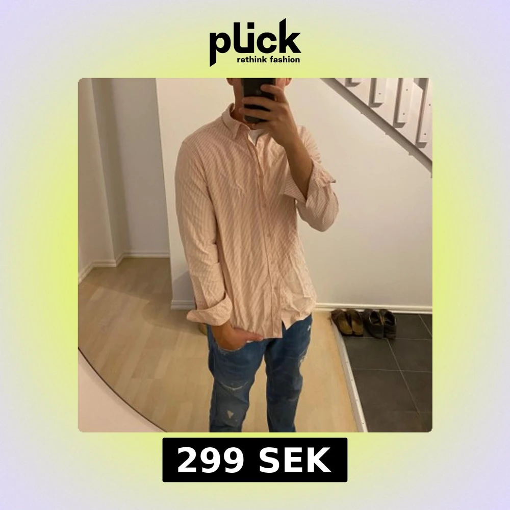 Säljer en snygg randig skjorta från Massimo Dutti i vitt och orange. Skjortan har klassisk krage, långa ärmar och knäppning framtill. Tillverkad i mjuk bomull som känns skön mot huden. Perfekt för dig som gillar en clean och stilren look.