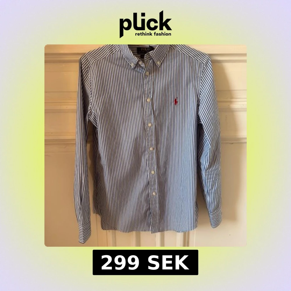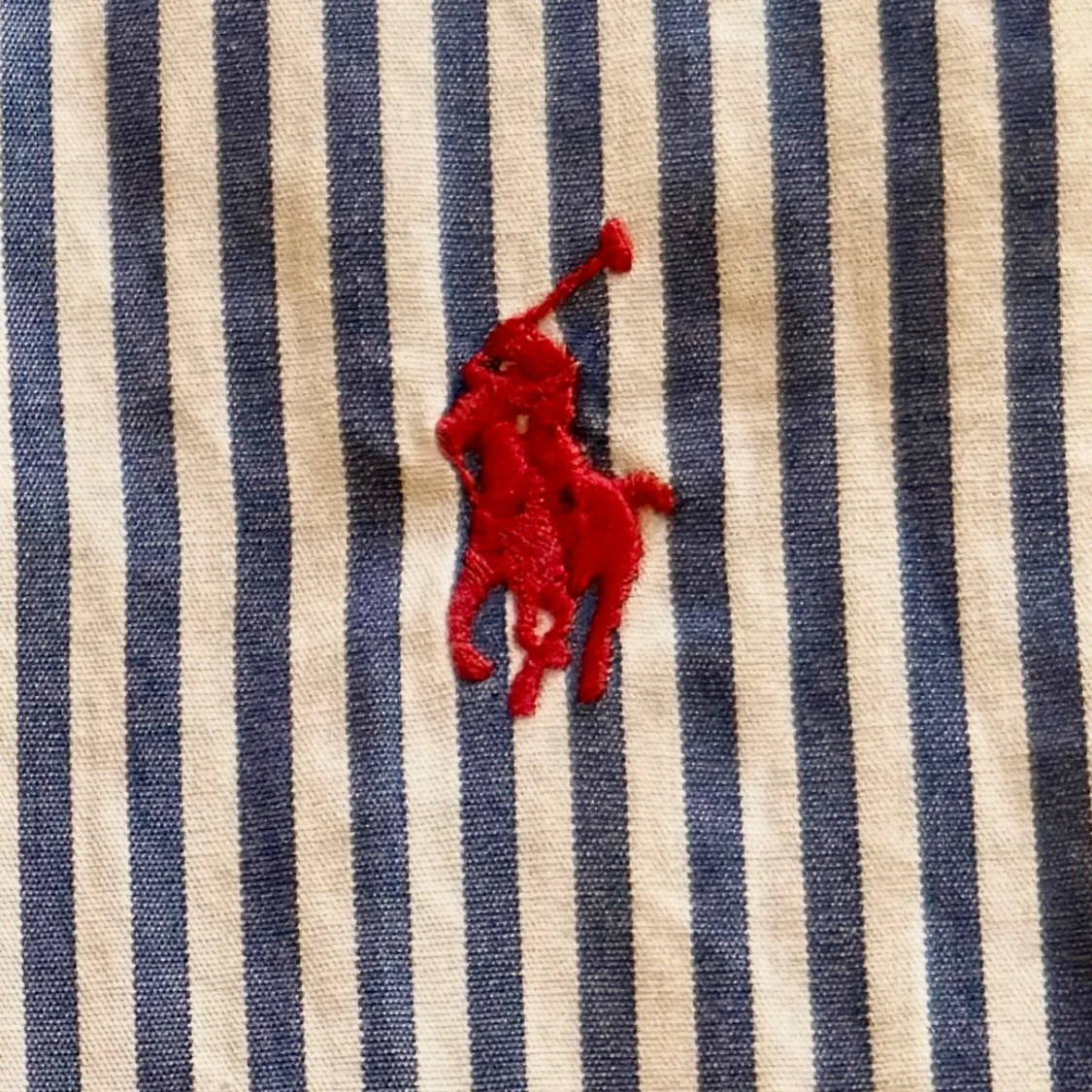 Snygg skjorta från Ralph Lauren med blå-vita ränder. Köpt på NK för ca. 2 år sen men knappt använd. I L barnstorlek (14-16), sitter typ som en XS i vuxenstorlek. Nypris 999kr
