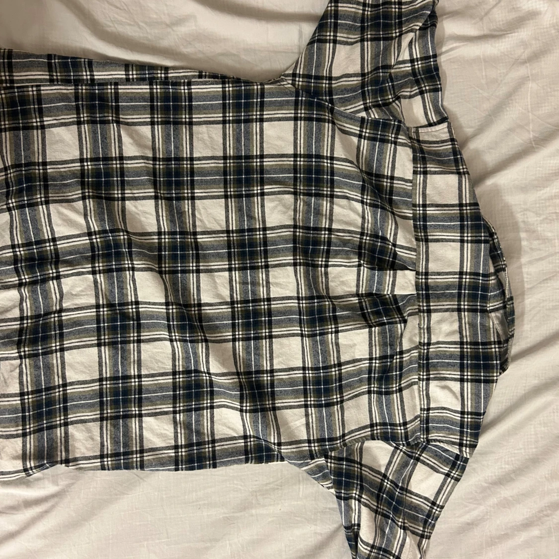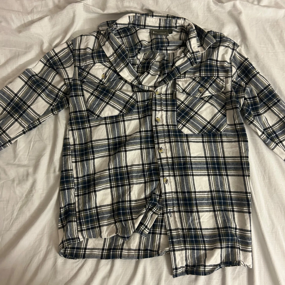 Snygg rutig skjorta i blått, vitt och svart med klassisk krage och två bröstfickor. Skjortan har långa ärmar och stängs med knappar framtill. Perfekt för en avslappnad och cool stil.