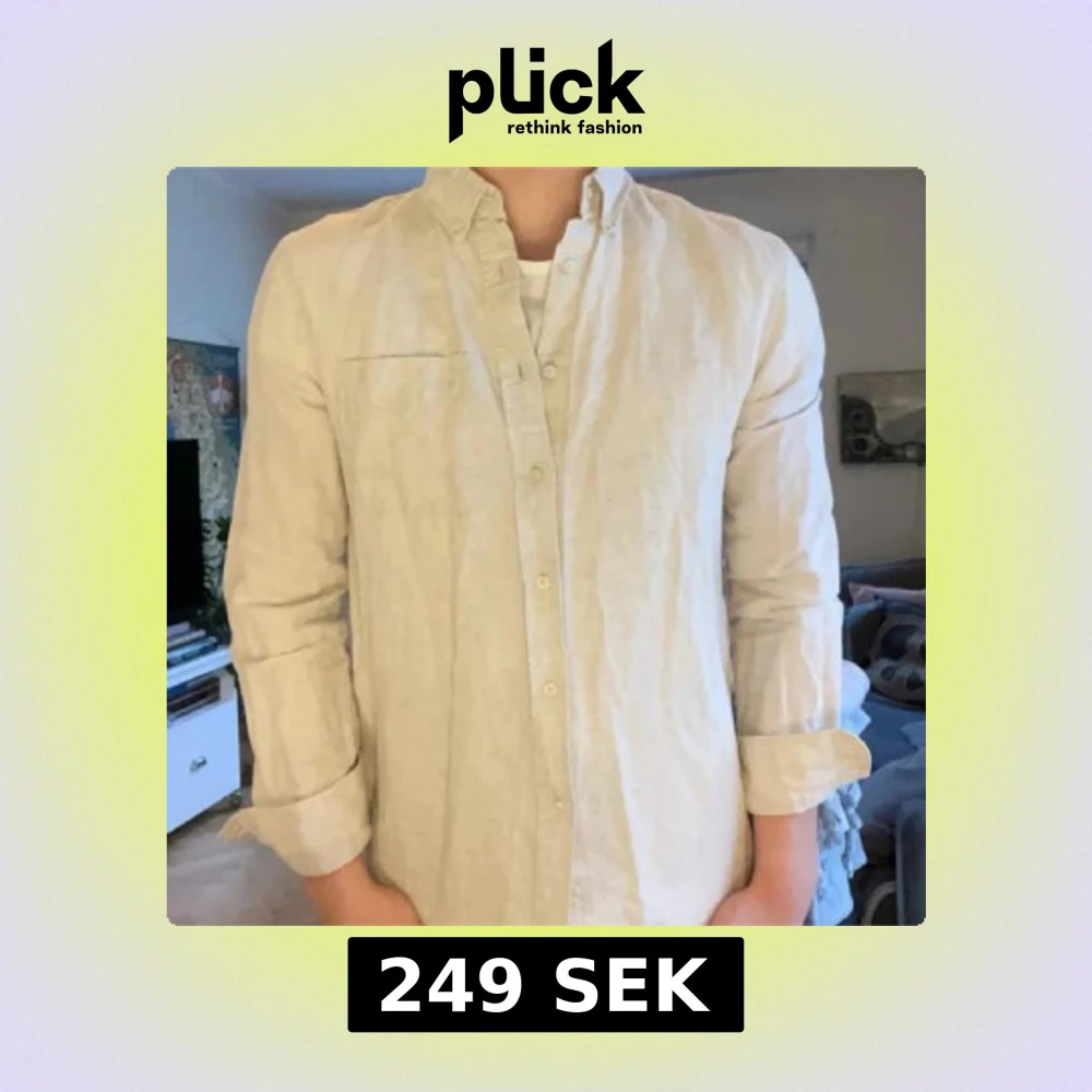 Säljer en stilren beige skjorta från Zara i linne. Skjortan har klassisk krage, knäppning framtill och långa ärmar. Perfekt för en avslappnad men ändå snygg look.