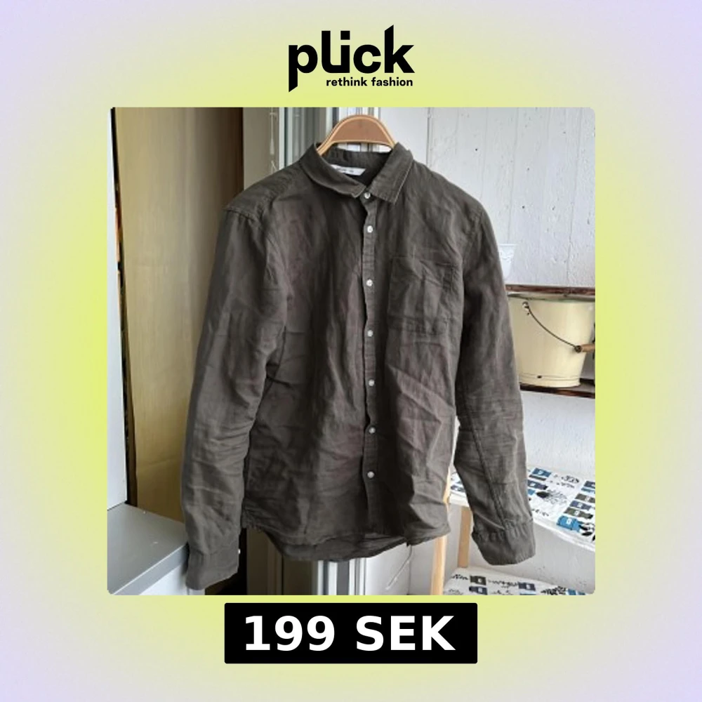 Vet inte om man får rätt uppfattning om färgen men den är i vilket fall olivgrön, inte brun. Har varit ett uppskattat plagg från min sida genom åren men är nu för liten. Linneskjortan från Ellos har en klassisk krage, vita knappar framtill och en bröstficka. Perfekt för dig som gillar enkel och stilren design med naturligt och luftigt material. 170 barn kille. Mer frågor i dm!!