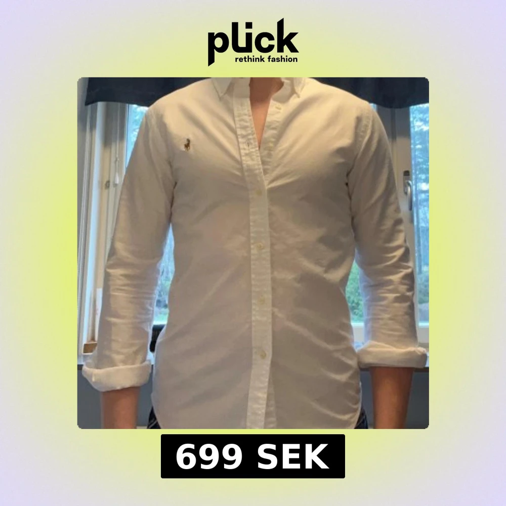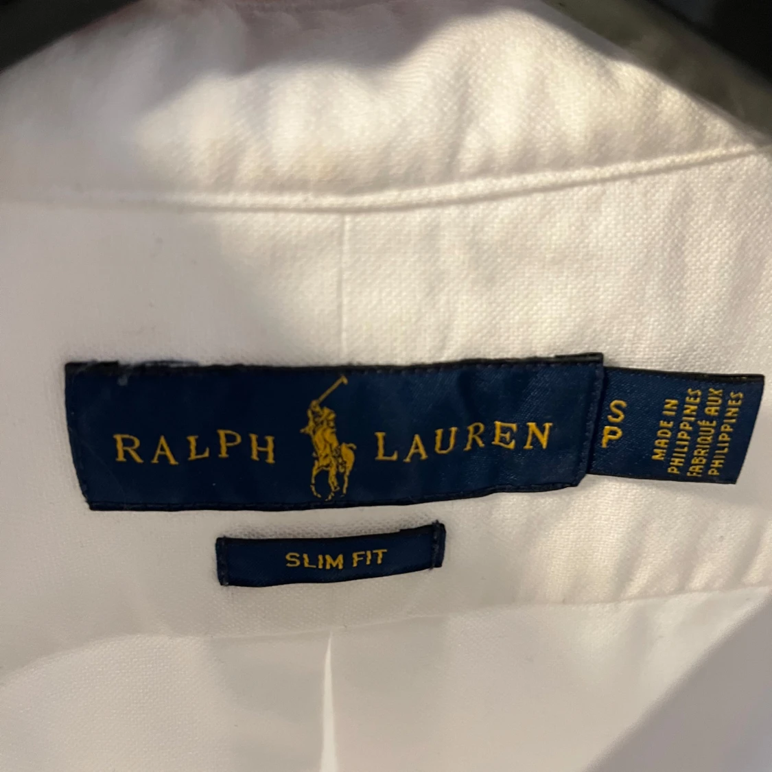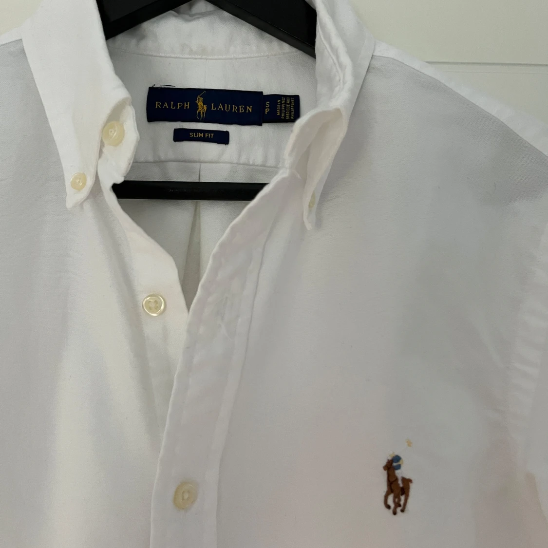 Säljer en vit skjorta från Ralph Lauren i slim fit. Skjortan är i storlek S och är i 9/10 skick. Passar någon under 180.