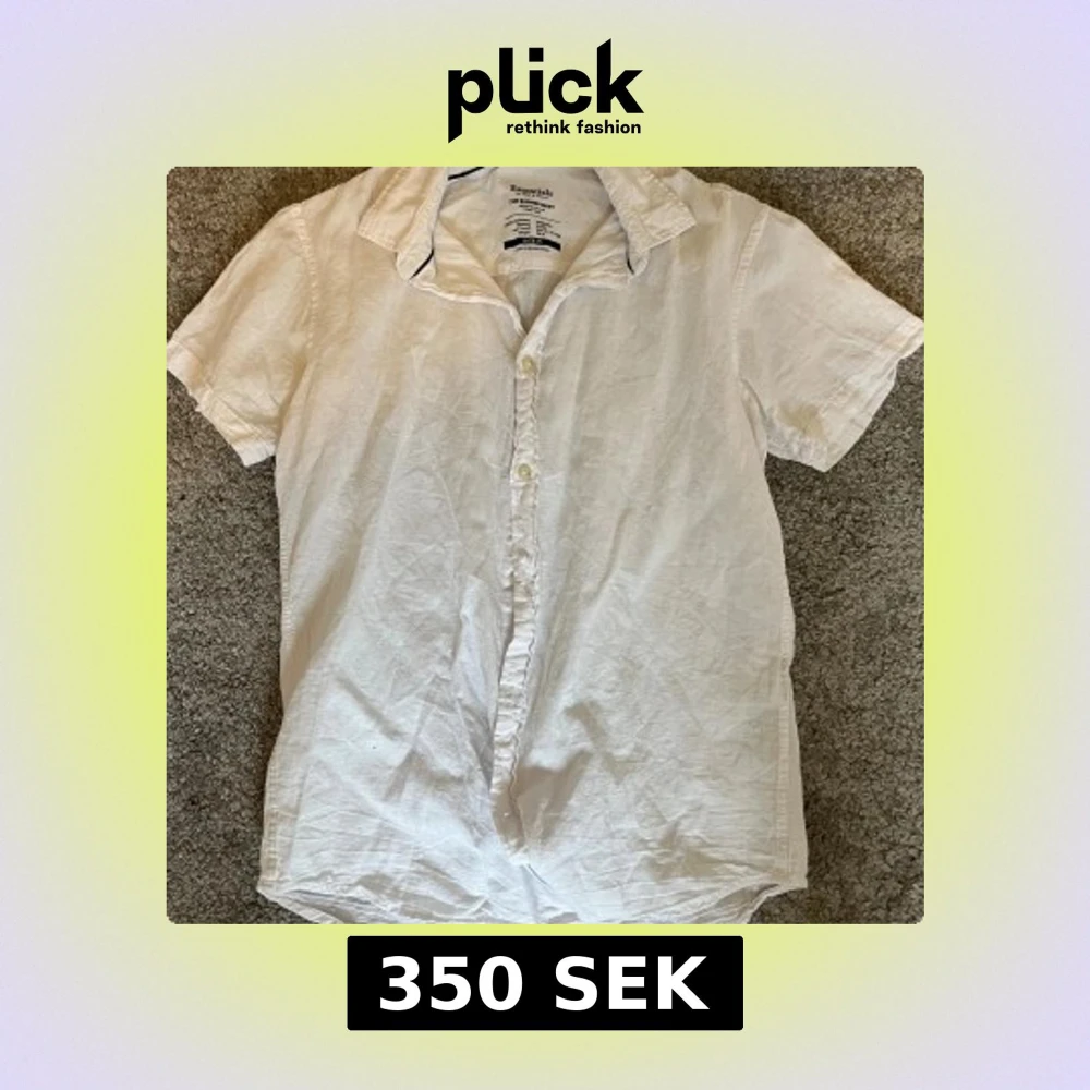 Fräsch vit skjorta från Essentials by Jack & Jones i storlek M. Skjortan har klassisk krage, korta ärmar och knappar framtill. Tillverkad i en skön blandning av bomull och linne, perfekt för varma dagar. Enkel och stilren design som funkar till många olika looks.