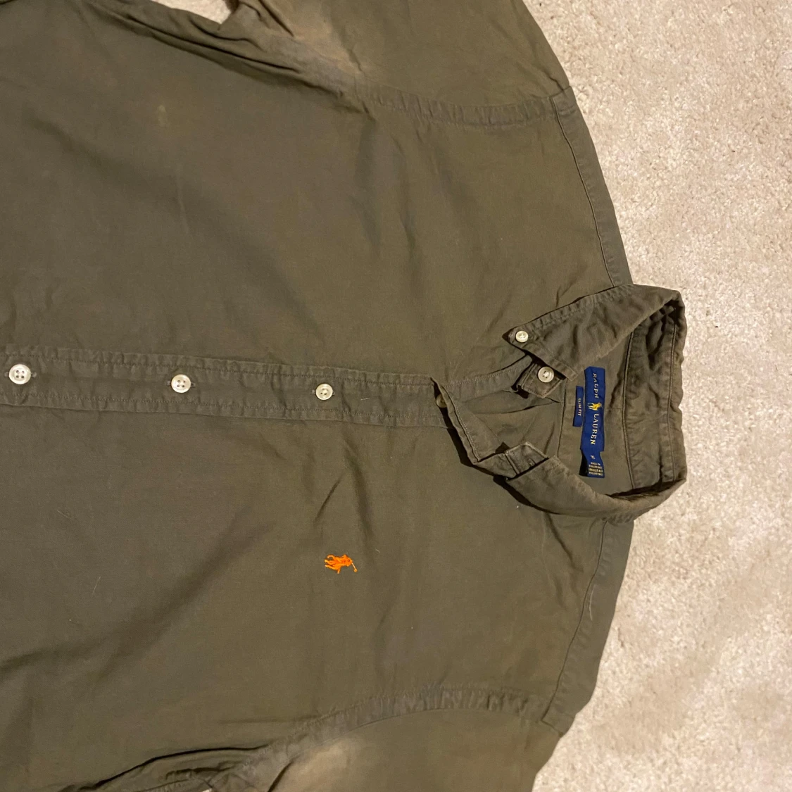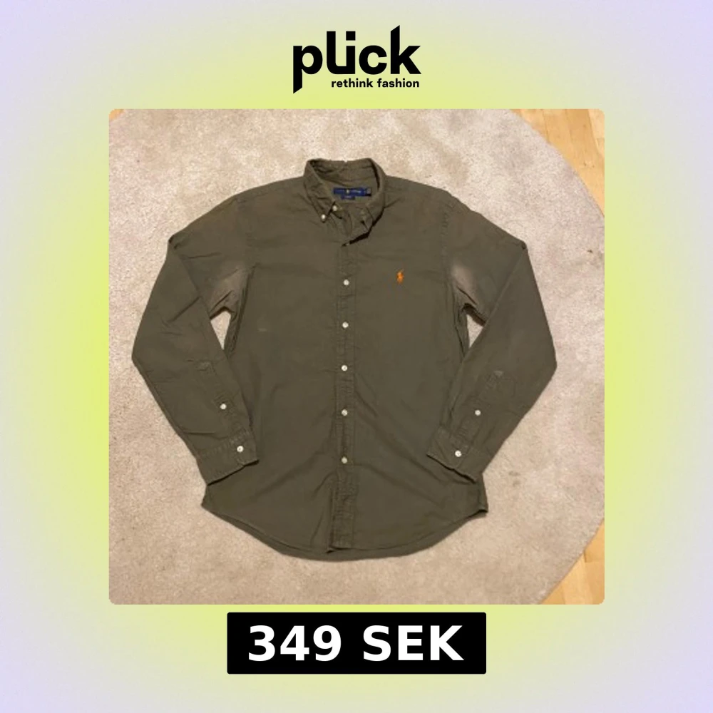 Ralph Lauren Skjorta – Slim Fit – M Säljer en snygg och klassisk skjorta från Ralph Lauren i färgen olivgrön. Modellen är Slim Fit och storlek Medium (M). Ikonisk orange Polo-logga broderad på bröstet. Skjortan är tillverkad i ett mjukt och slitstarkt bomullstyg och passar perfekt till både vardag och mer uppklädda tillfällen. ✅ Bra skick ✅ Knappar i full funktion ✅ Tillverkad i Filippinerna ✅ 100 % äkta Ralph Lauren