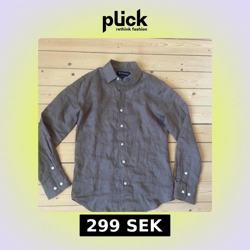 Säljer en stilren grön/brun skjorta i linne från ST Studios. Skjortan har långa ärmar och knappar framtill. Perfekt för en avslappnad men ändå elegant look. Passar bra till både jeans och chinos. Ny pris är ca 700. Har bara använt 1 gång. DEN ULTIMATA TRÖJAN TILL SOMMARN!