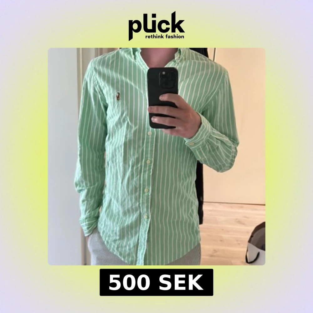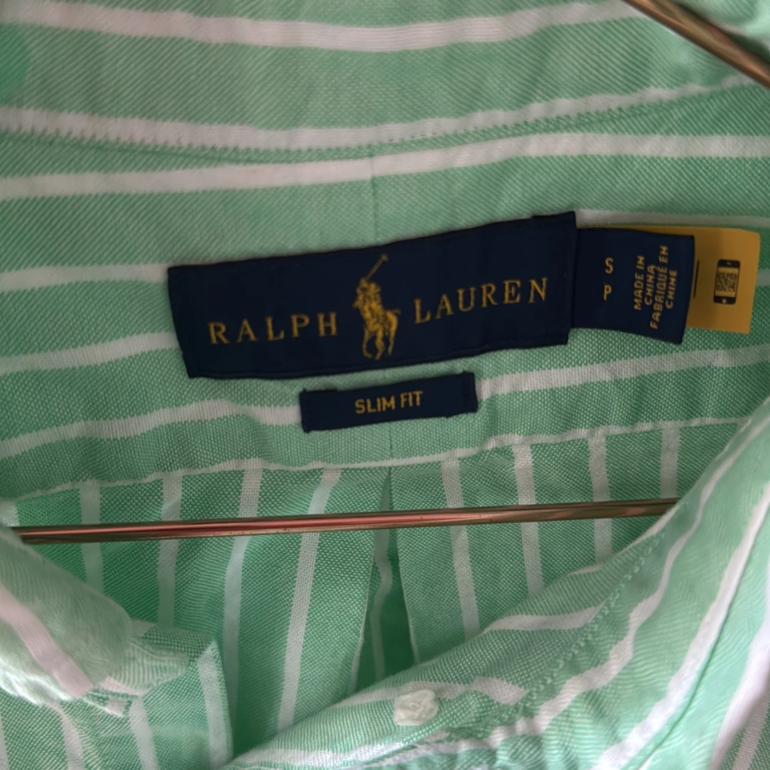 Snygg grön skjorta med vita ränder från Ralph Lauren. Perfekt för dig som gillar stilrena och fräscha plagg. Pris inte satt i sten👍