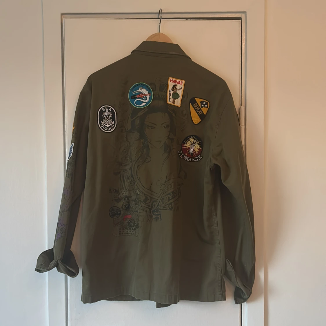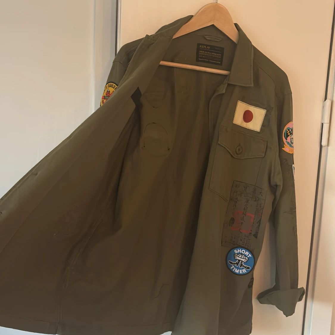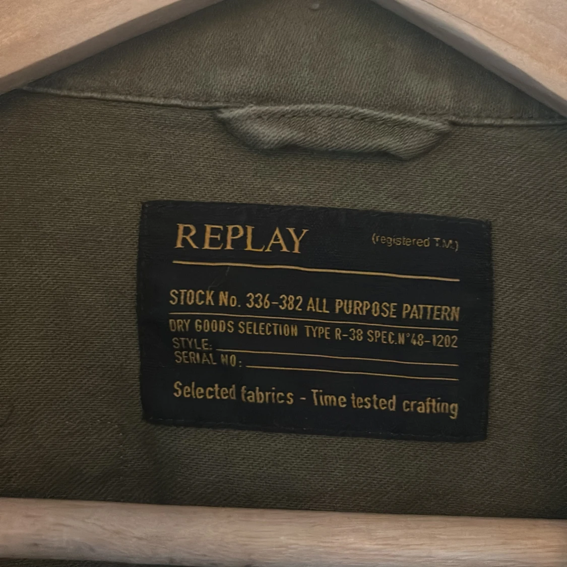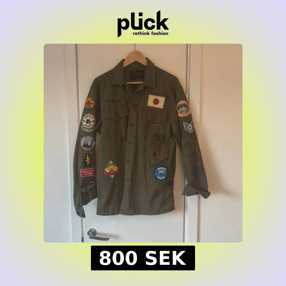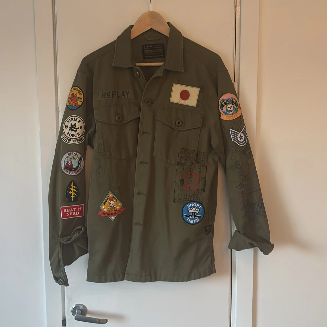 Säljer en grön overshirt från Replay med coola patches över hela jackan. Den har långa ärmar och knappar framtill. Perfekt för en unik och avslappnad stil. Nypris 1300 kr, Mitt pris 800. Används 2 gånger och är köpt från replay hede fashion outlet.