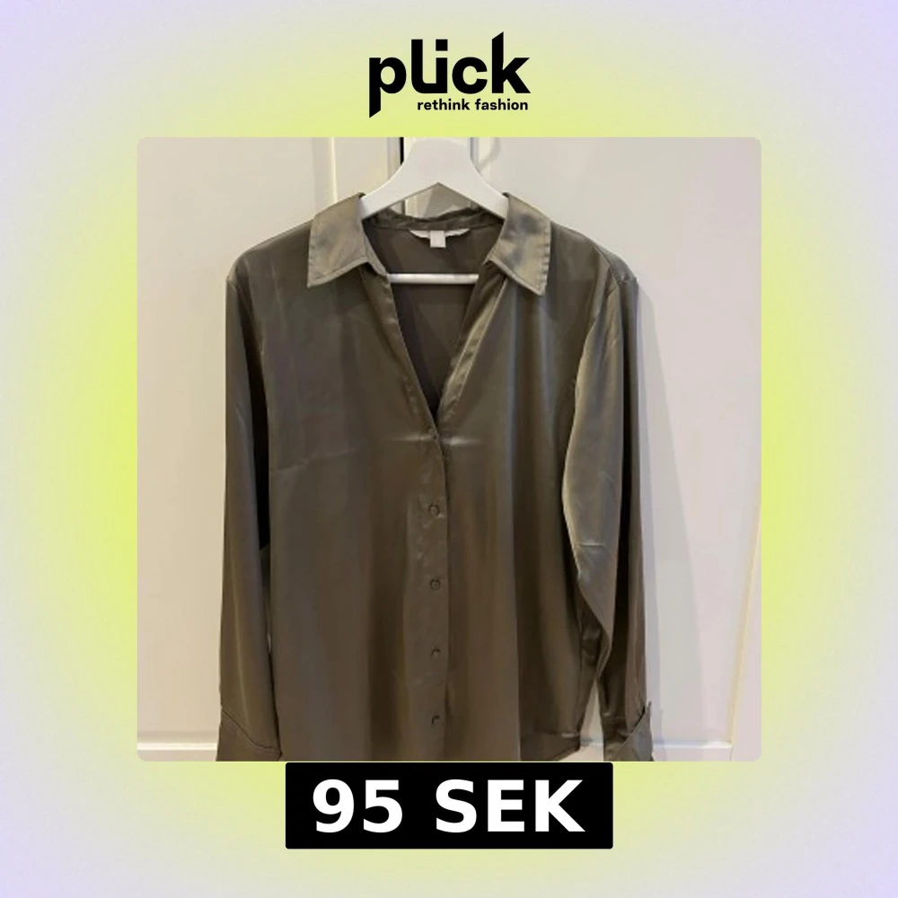 Elegant grön blus i siden-look med klassisk krage och knappar framtill. Perfekt för en stilren look.