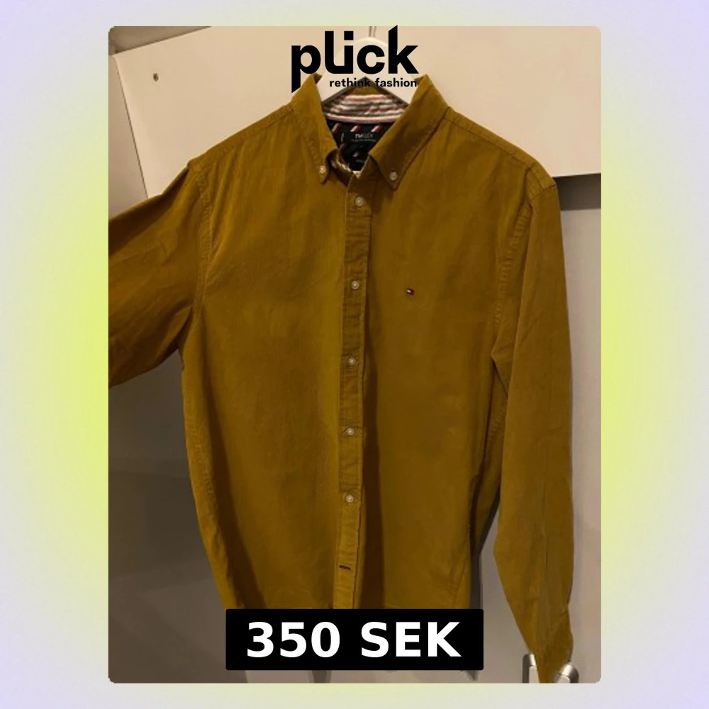 Snygg gul manchesterskjorta från Tommy Hilfiger i regular fit som aldrig har använts. Skjortan har klassisk krage, knappar framtill och diskret logga på bröstet. Långärmad med coola detaljer som randigt tyg på insidan av kragen och slits med Hilfiger-band vid sidan.