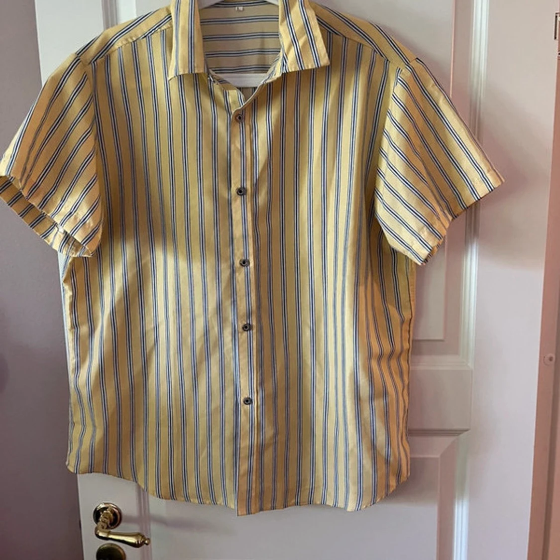 Kortärmad skjorta med gula och blå ränder, klassisk krage och knäppning framtill. Skjortan har en avslappnad passform och är perfekt för varma dagar. Tillverkad i mjukt bomullstyg som känns skönt mot huden.