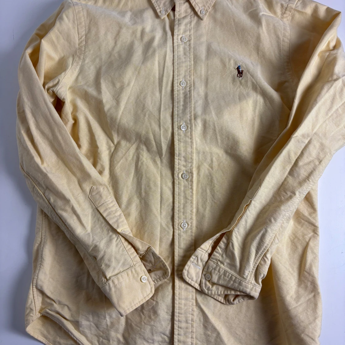 Klassisk gul skjorta från Ralph Lauren med broderad logga på bröstet. Skjortan har lång ärm, knappar framtill och en snygg krage. Tillverkad i mjuk bomull som känns skön mot huden. Perfekt för dig som gillar stilrena och tidlösa plagg.