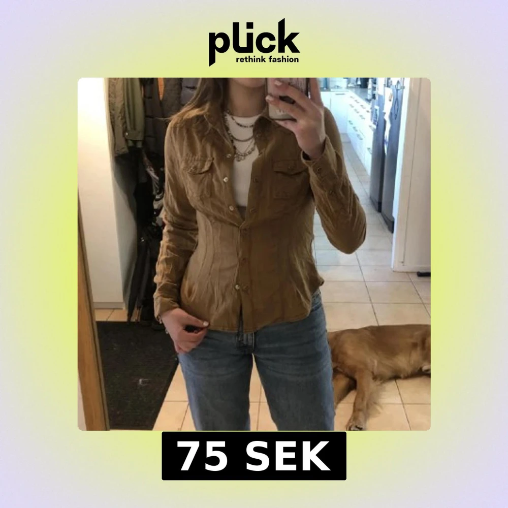 Säljer en brun figursydd mocka skjorta från H&M med klassisk krage och knappar framtill. Skjortan har två bröstfickor med lock och långa ärmar. I strl 36
