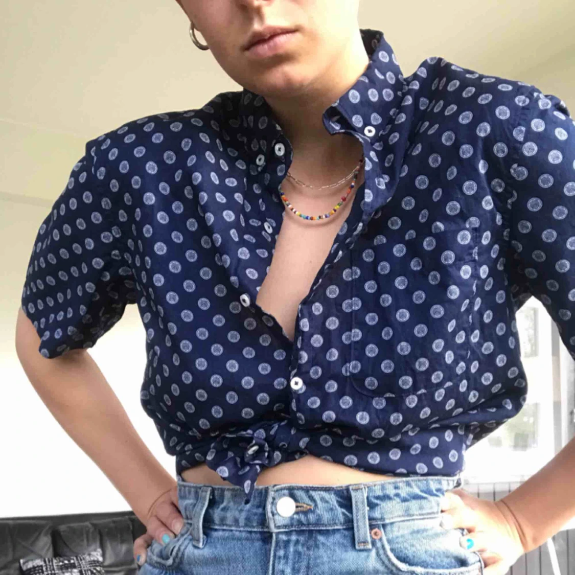 Kortärmad skjorta i mörkblått mönstrat och tunt tyg. Är en herrmodell men passar både tjejer och killar. Otroligt skön och snygg men använder den för lite. Möter upp i Stockholm, annars betalar köparen frakten