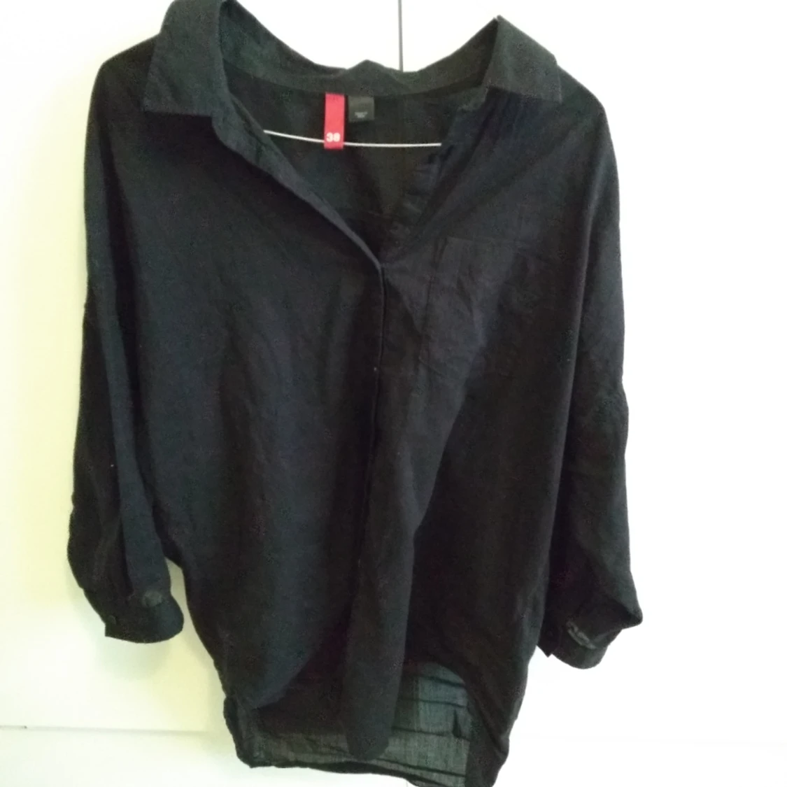 strl S/M, köpt på H&M. ärmar till strax efter armbågen. svart ganska tunnt tyg.