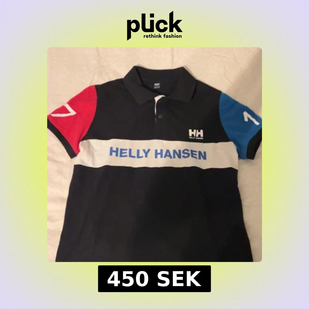 Snygg pikétröja från Helly Hansen med svart bas, vit rand över bröstet och blått tryck. Ena ärmen är röd och den andra blå, båda med vita detaljer. Klassisk krage och knappar framtill. Perfekt för en sportig och avslappnad look.
