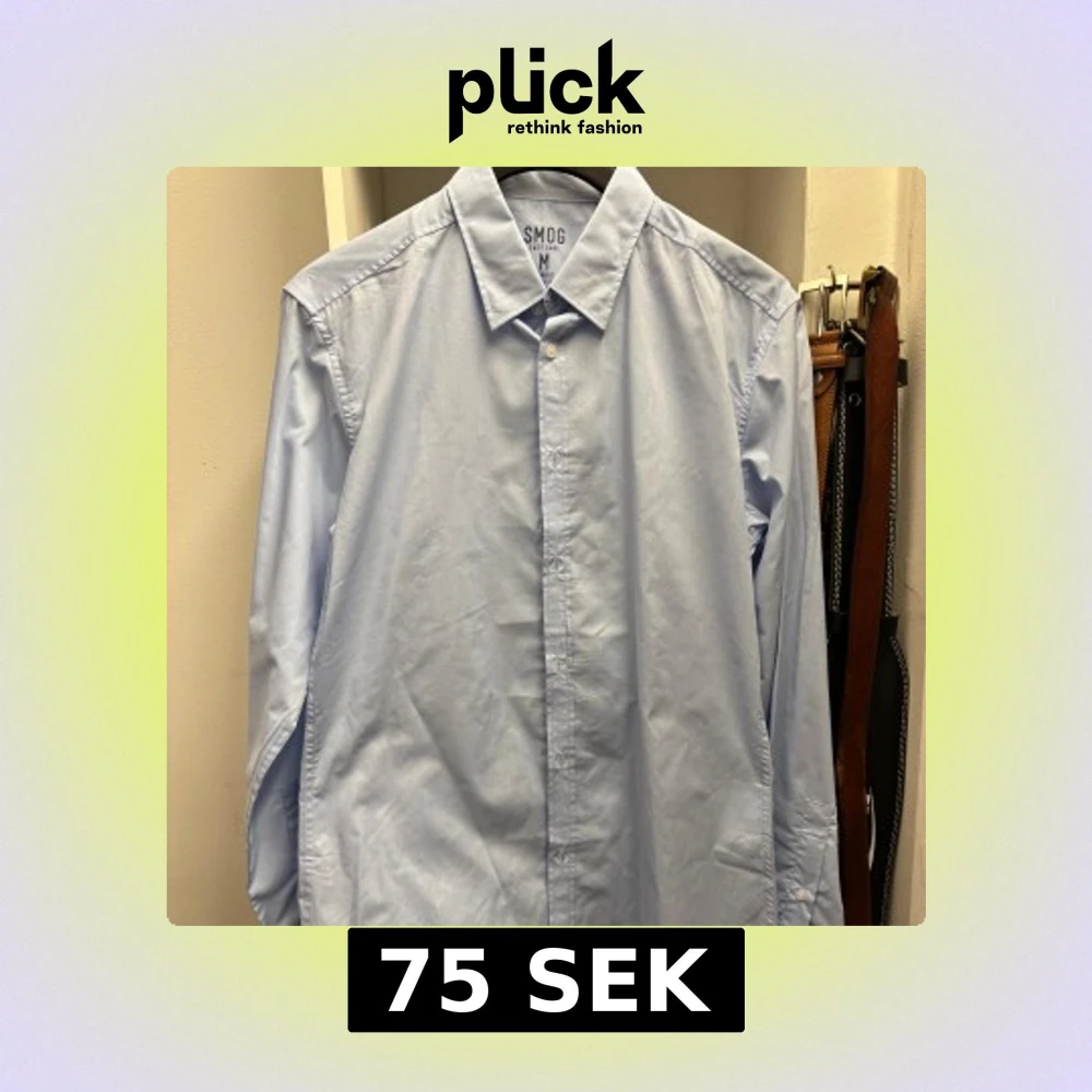 Säljer en stilren ljusblå skjorta från Smog. Skjortan har en klassisk krage och knappar framtill. Perfekt för en snygg och enkel look.