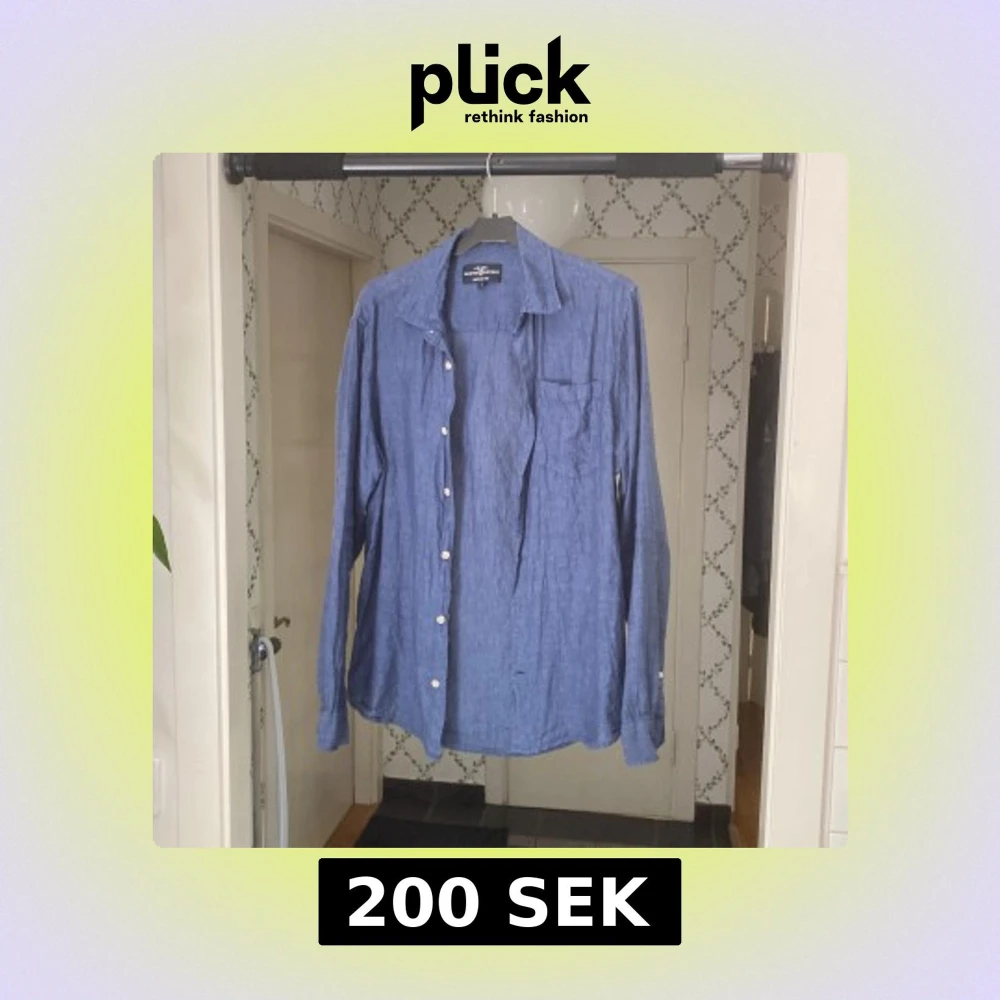 Snygg blå skjorta i linne från Hampton Republic med klassisk krage och vita knappar. Skjortan har en bröstficka och lång ärm, perfekt för en avslappnad men stilren look.