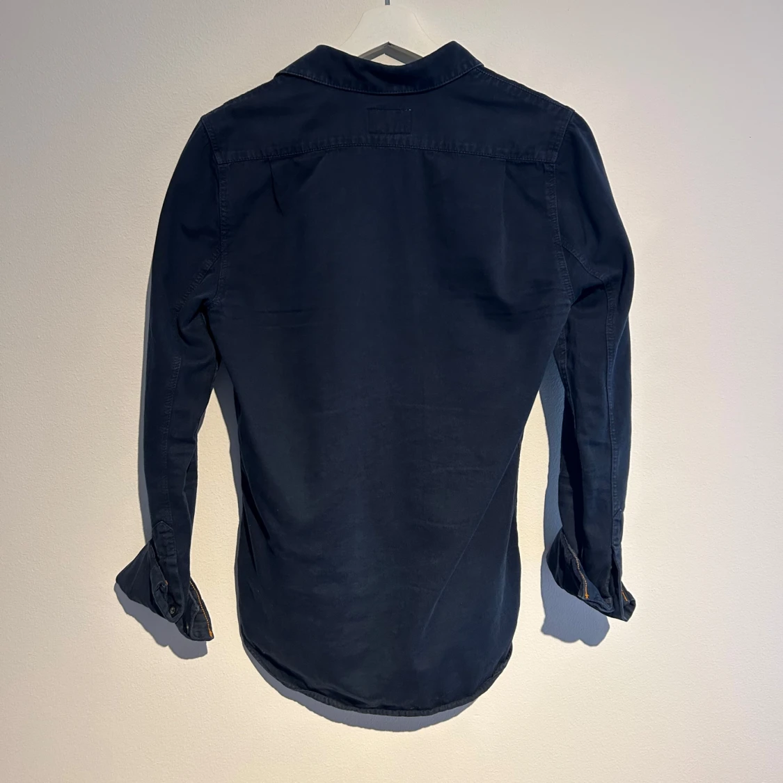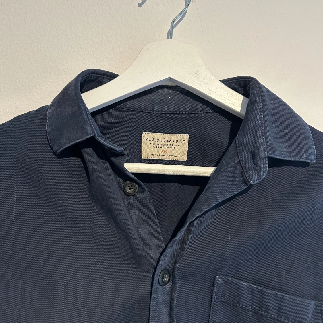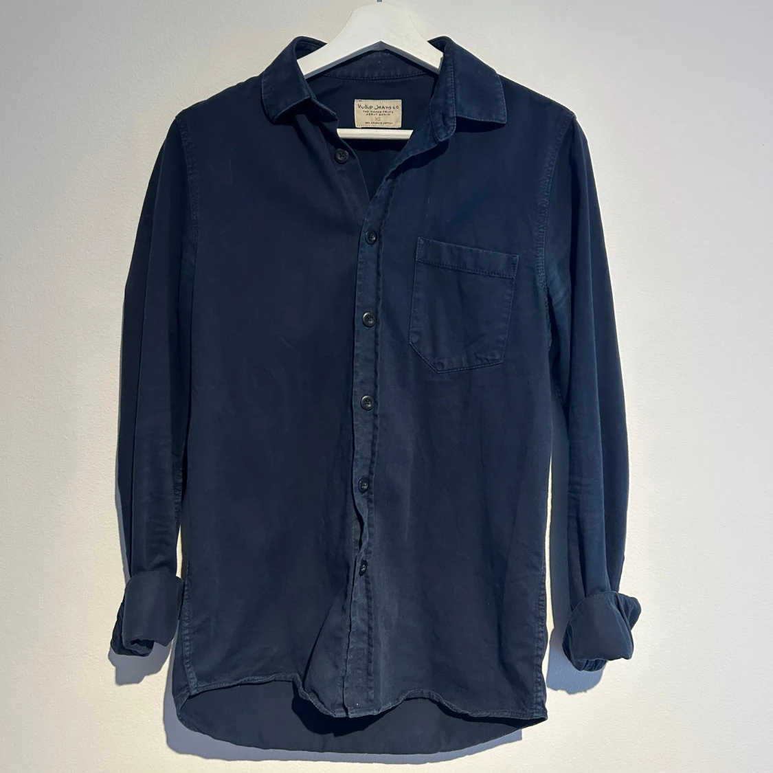 Snygg mörkblå skjorta från Nudie Jeans Co i herrstorlek XS. Skjortan har långa ärmar och en klassisk krage med knappar framtill. Perfekt för en stilren look.