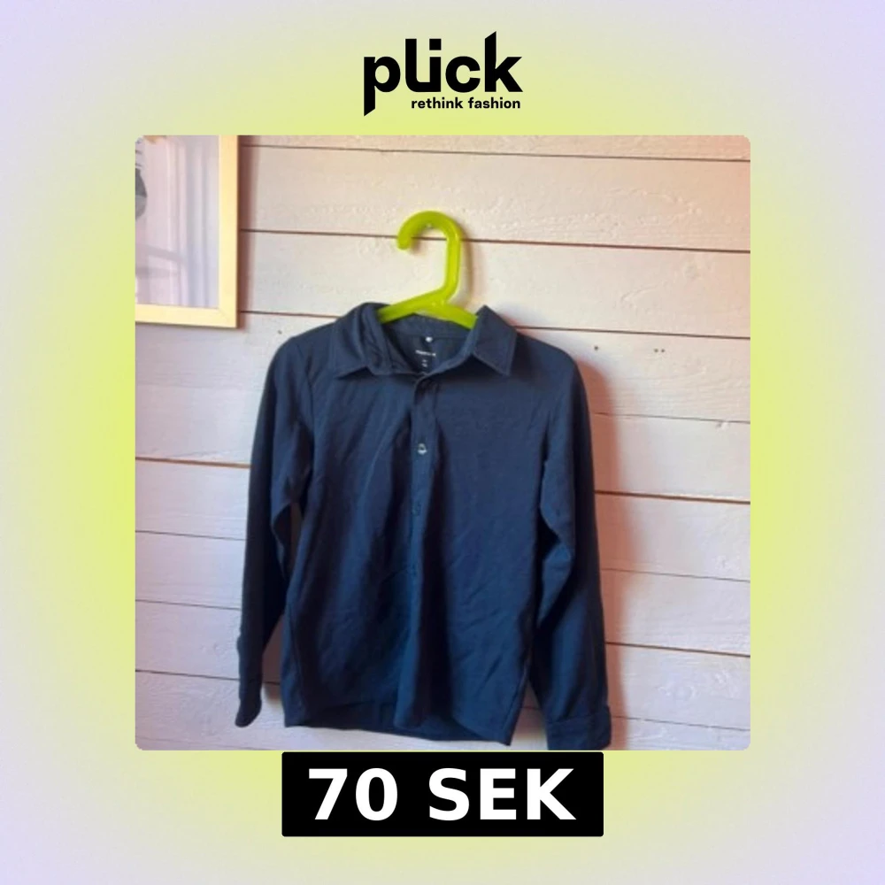 En stilren mörkblå skjorta från H&M med klassisk krage och knäppning framtill. Skjortan har långa ärmar och är tillverkad i mjuk bomull, perfekt för en clean och enkel look.