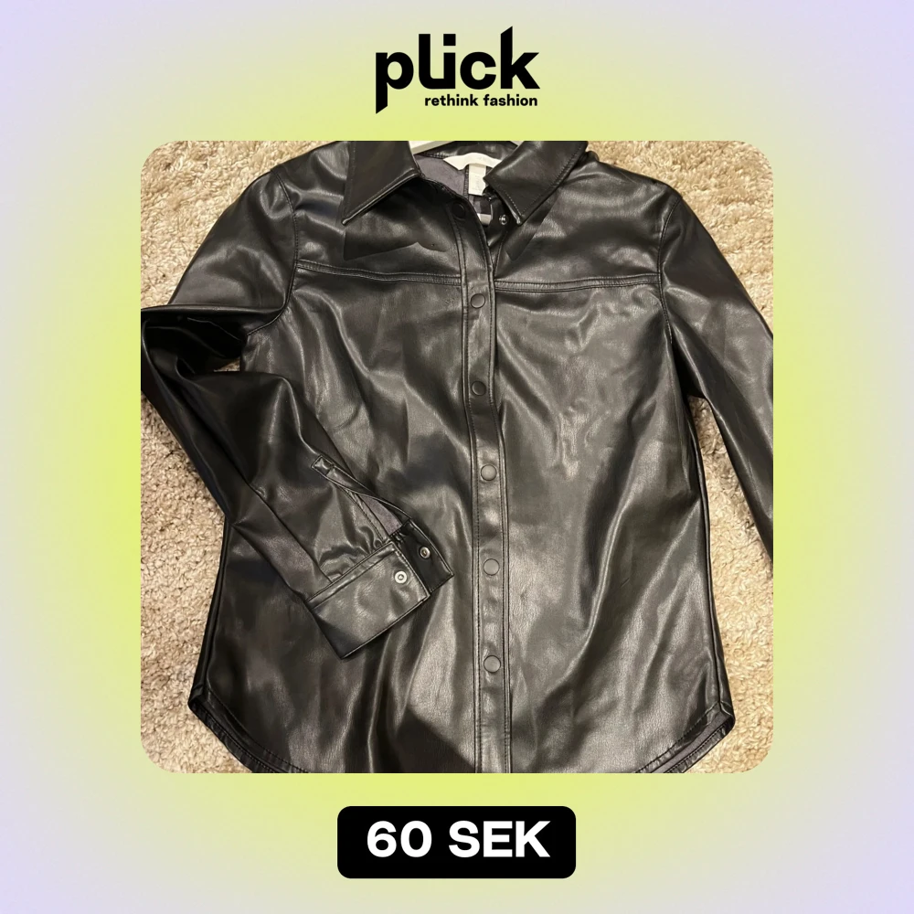 Snygg svart skinnskjorta i mycket bra skick. Den har långa ärmar och knappar framtill. Perfekt för en cool och stilren look, oavsett om det är för en utekväll eller en avslappnad dag. Skjortan har en klassisk krage och är gjord av ett mjukt skinnmaterial som ger en lyxig känsla.