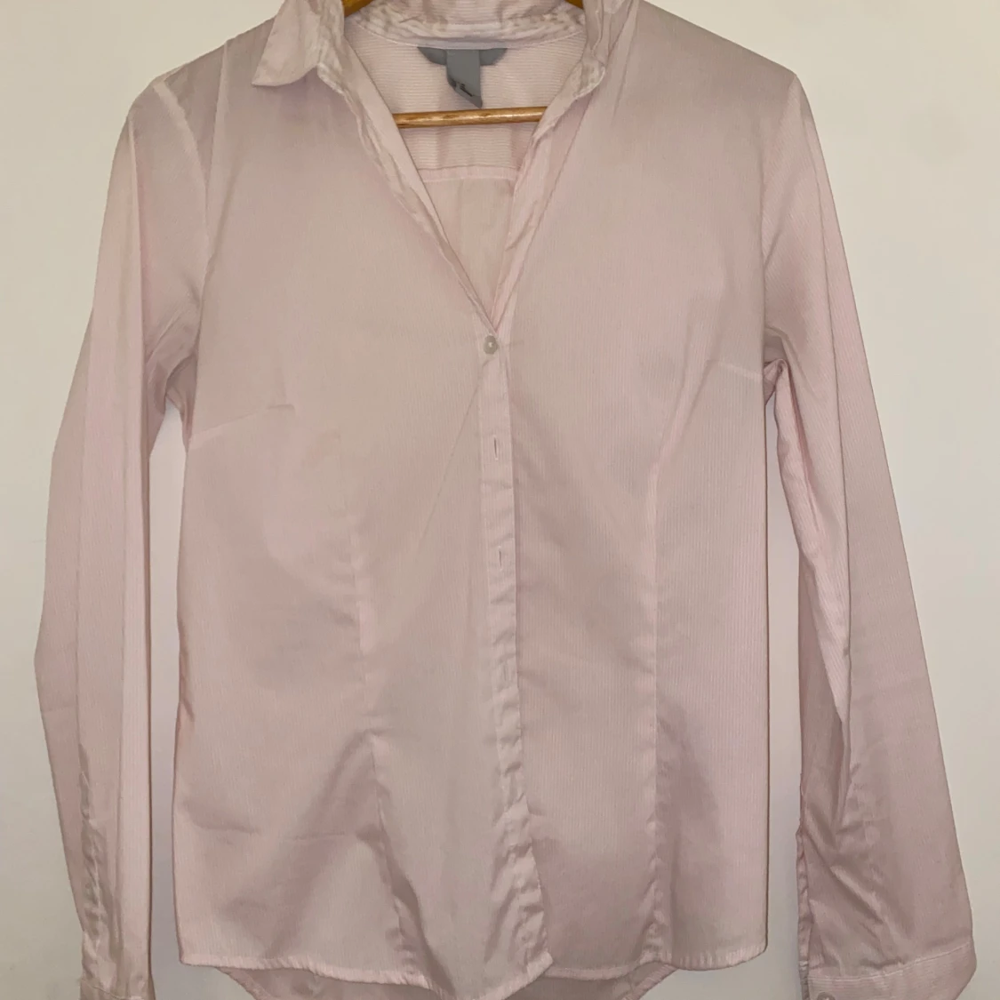 Säljer en stilren ljusrosa skjorta med klassisk krage och knäppning framtill. Skjortan har lång ärm och en figurnära passform som ger en snygg siluett. Perfekt att styla med jeans eller kostymbyxor för en clean look.
