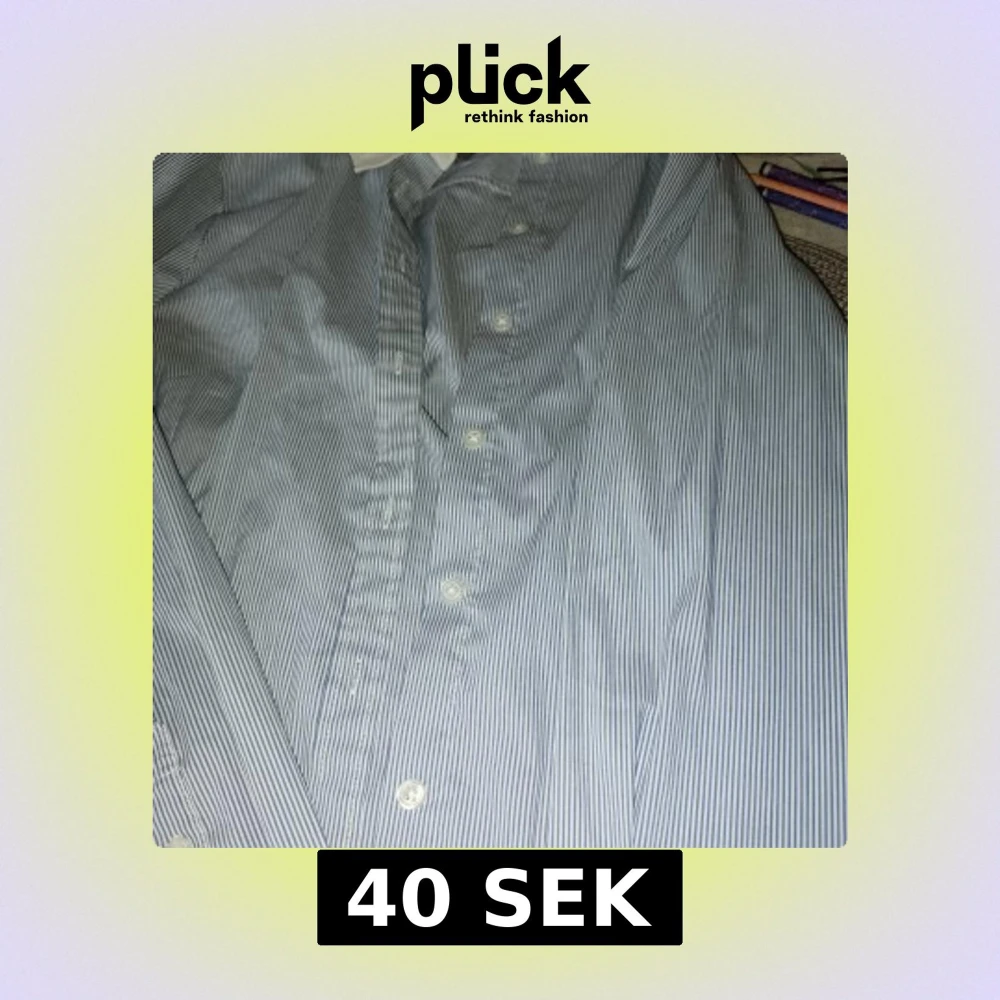 Snygg skjorta från H&M med smala blå och vita ränder och kontrasterande vit krage. Klassisk knappstängning framtill och långärmad modell. Perfekt för dig som gillar stilrena och fräscha plagg med en twist.