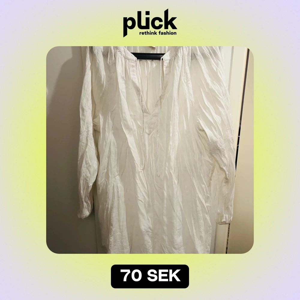 Säljer en superfin vit blus från H&M i storlek 46. Den har långa ärmar och en avslappnad passform med knytband vid halsen. Perfekt för både vardag och festliga tillfällen. Materialet är lätt och luftigt, vilket gör den idealisk för vår och sommar. 🕊️