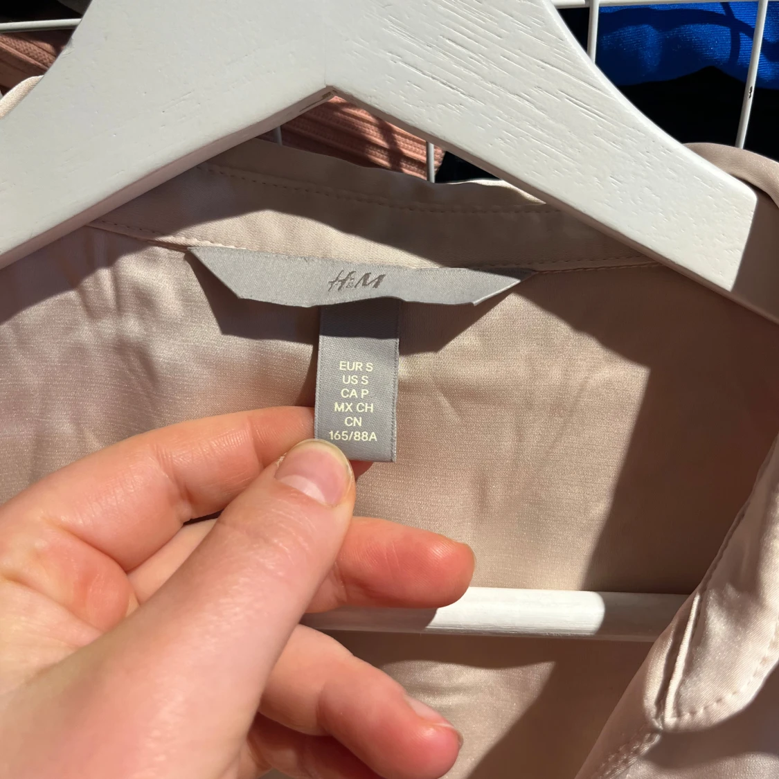 Säljer en stilren beige blus från H&M. Blusen har långa ärmar och knappar framtill. Perfekt för en elegant look.