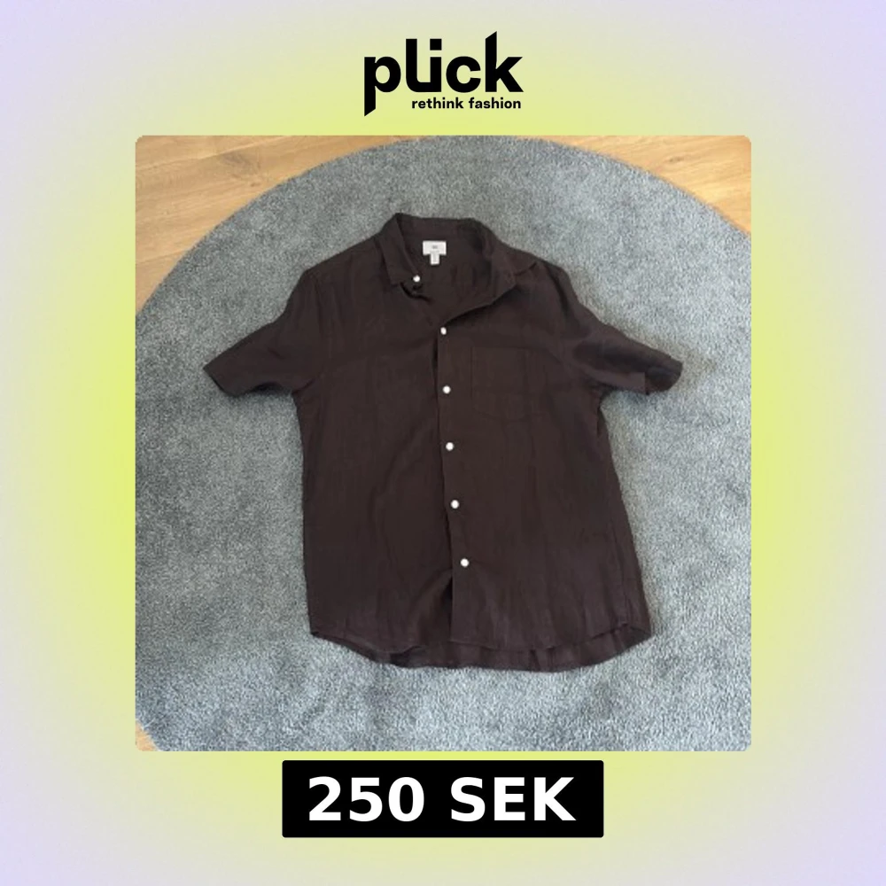 Säljer en brun kortärmad skjorta från H&M i regular fit. Skjortan har klassisk krage, vita knappar framtill och en bröstficka. Perfekt för varma dagar och enkel att styla till olika outfits. Skriv ifall ni vill ha mer information😀!