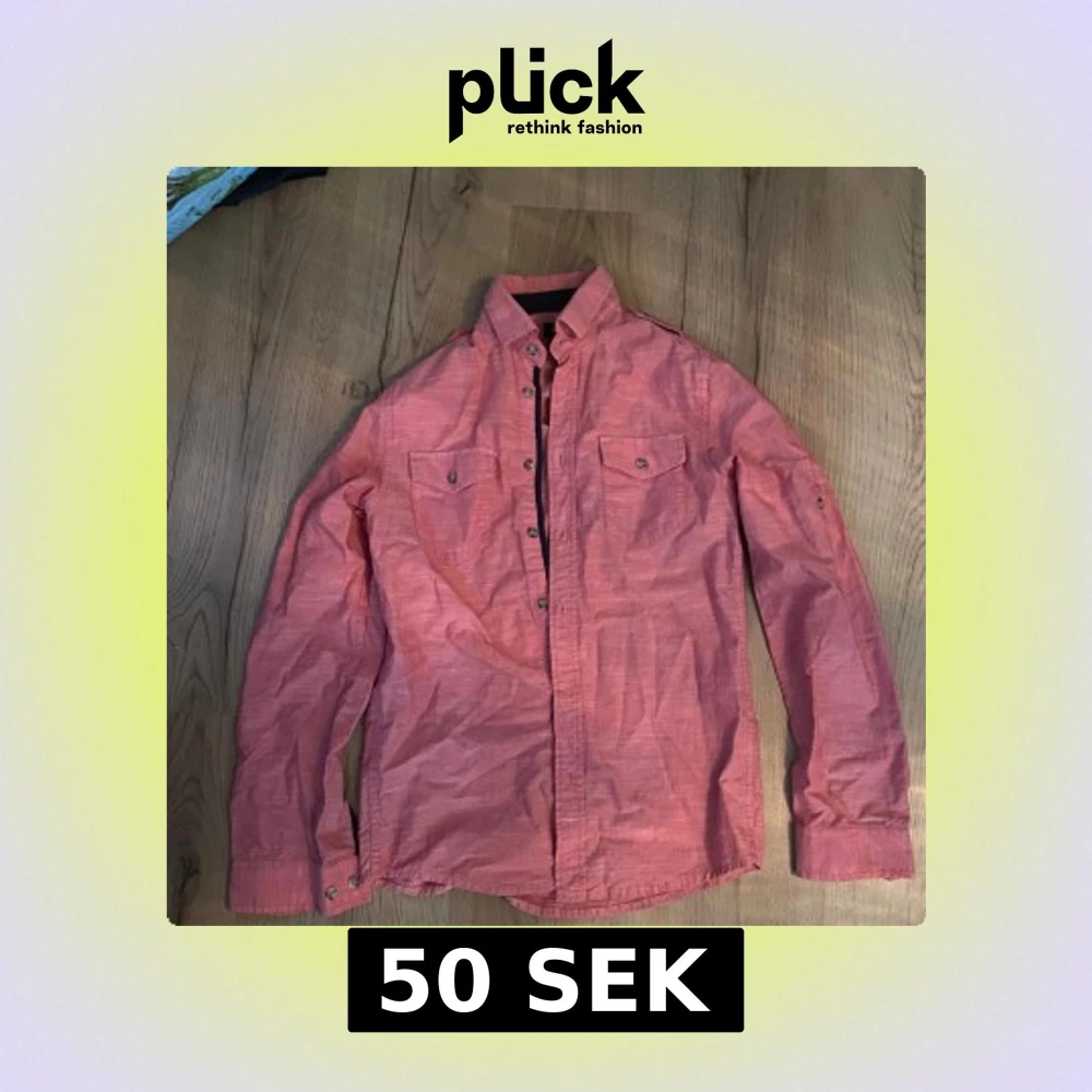 Snygg röd/rosa skjorta från H&M med långa ärmar och knappar framtill. Skjortan har två bröstfickor med knappstängning och en klassisk krage. Perfekt för en stilren look!