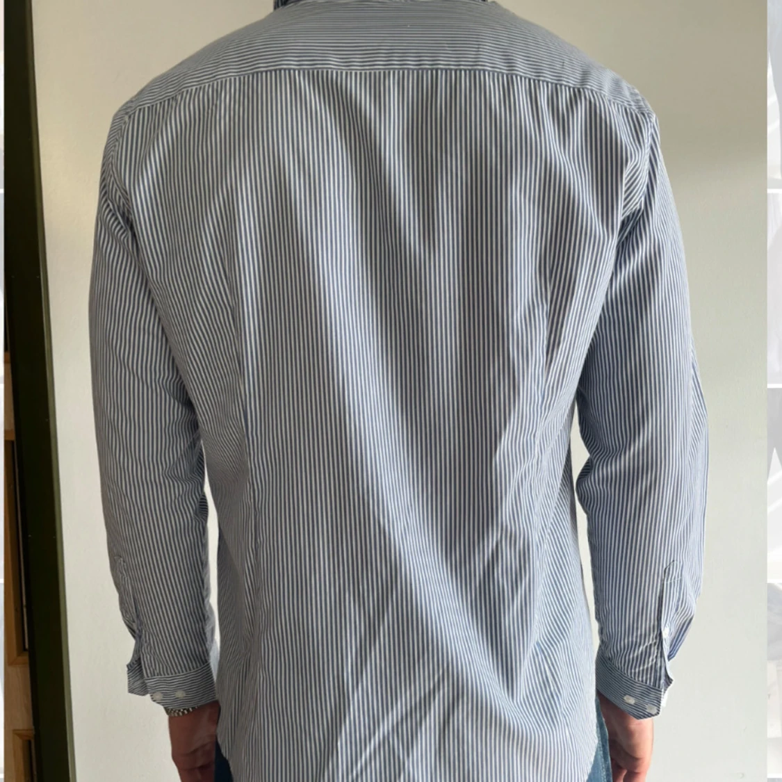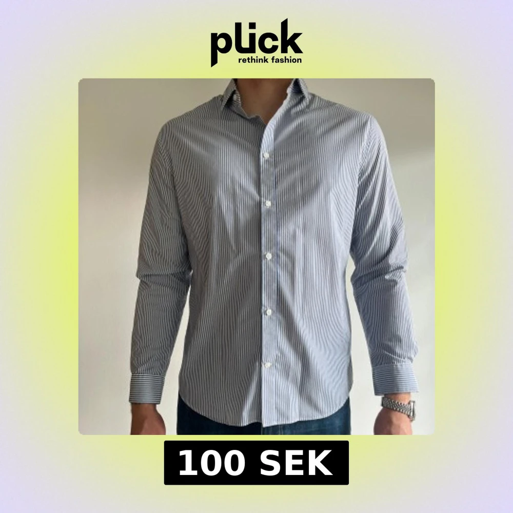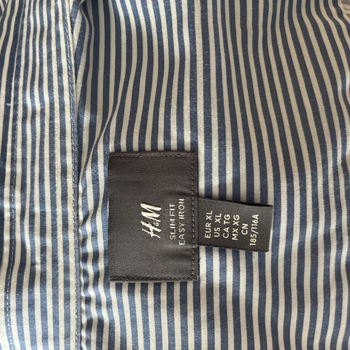 Säljer en stilren blåvit randig skjorta från H&M i slim fit-modell. Skjortan har långa ärmar, klassisk krage och knäppning framtill. Perfekt för dig som gillar en enkel men snygg look.