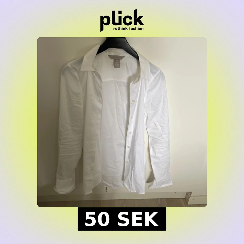 Klassisk vit skjorta från H&M med lång ärm och knäppning framtill. Skjortan har en stilren design med normal passform och mjukt bomullsmaterial. Perfekt till många olika tillfällen.