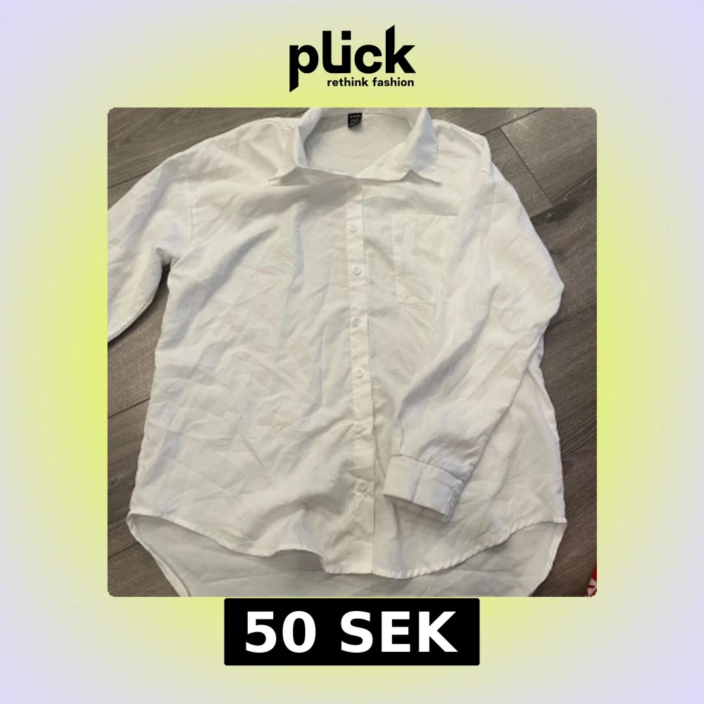 Vit skjorta från H&M i klassisk modell med lång ärm, bröstficka och knappar hela vägen framtill. Skjortan har en rak passform och är tillverkad i bomull, perfekt till jeans eller kostymbyxor.