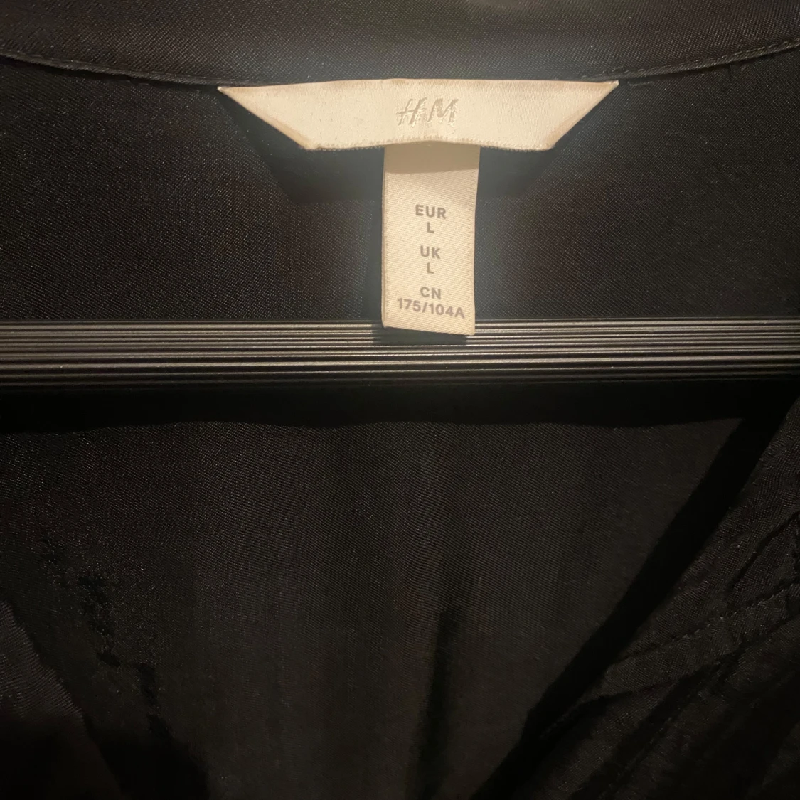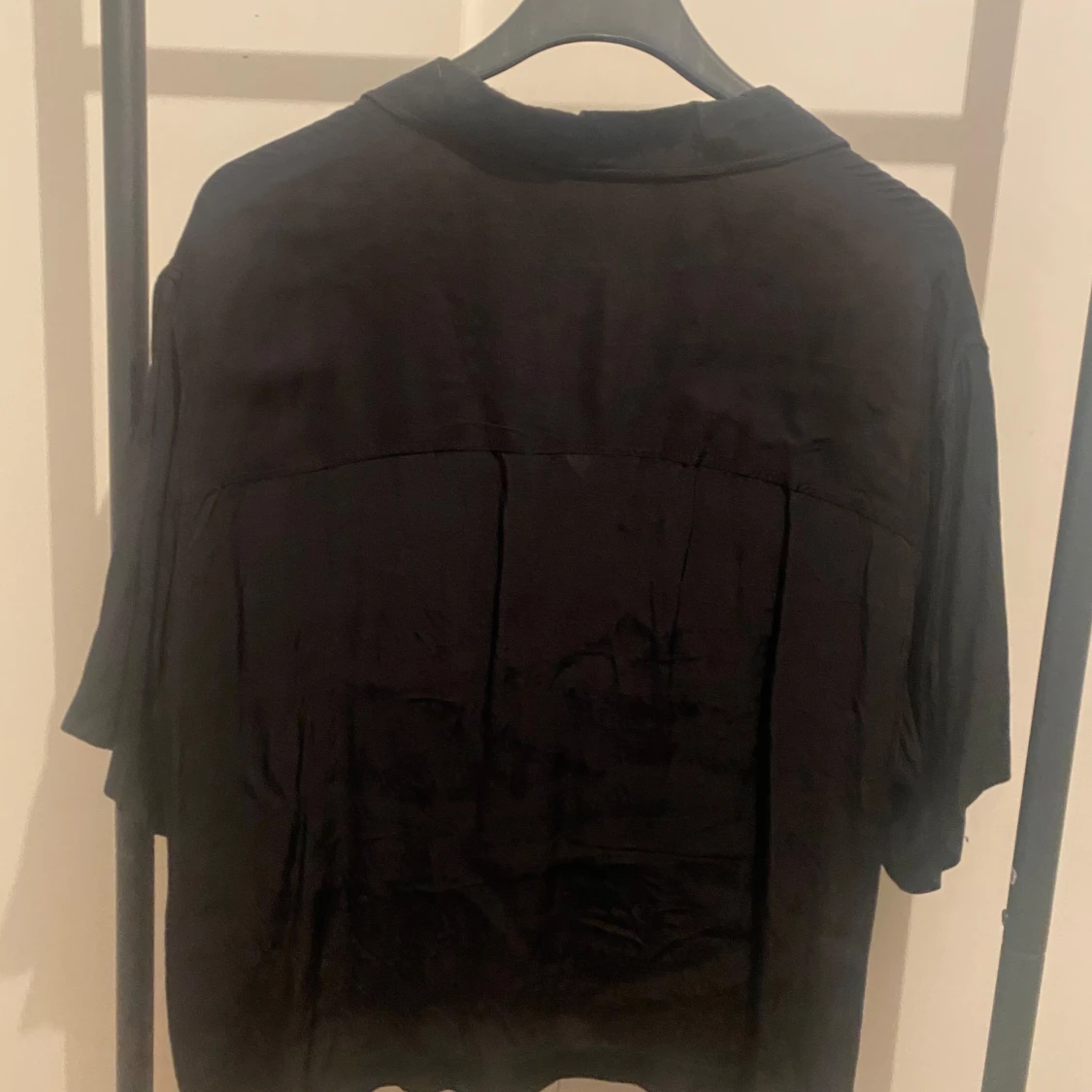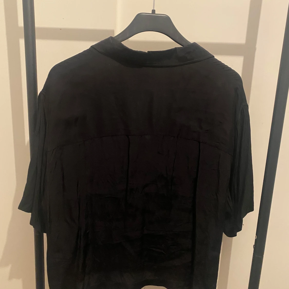 Svart skjorta från H&M i storlek L. Skjortan har klassisk krage, knappar framtill och en bröstficka. Modellen är lite loose och har lång ärm. Perfekt att styla med jeans eller dressade byxor.