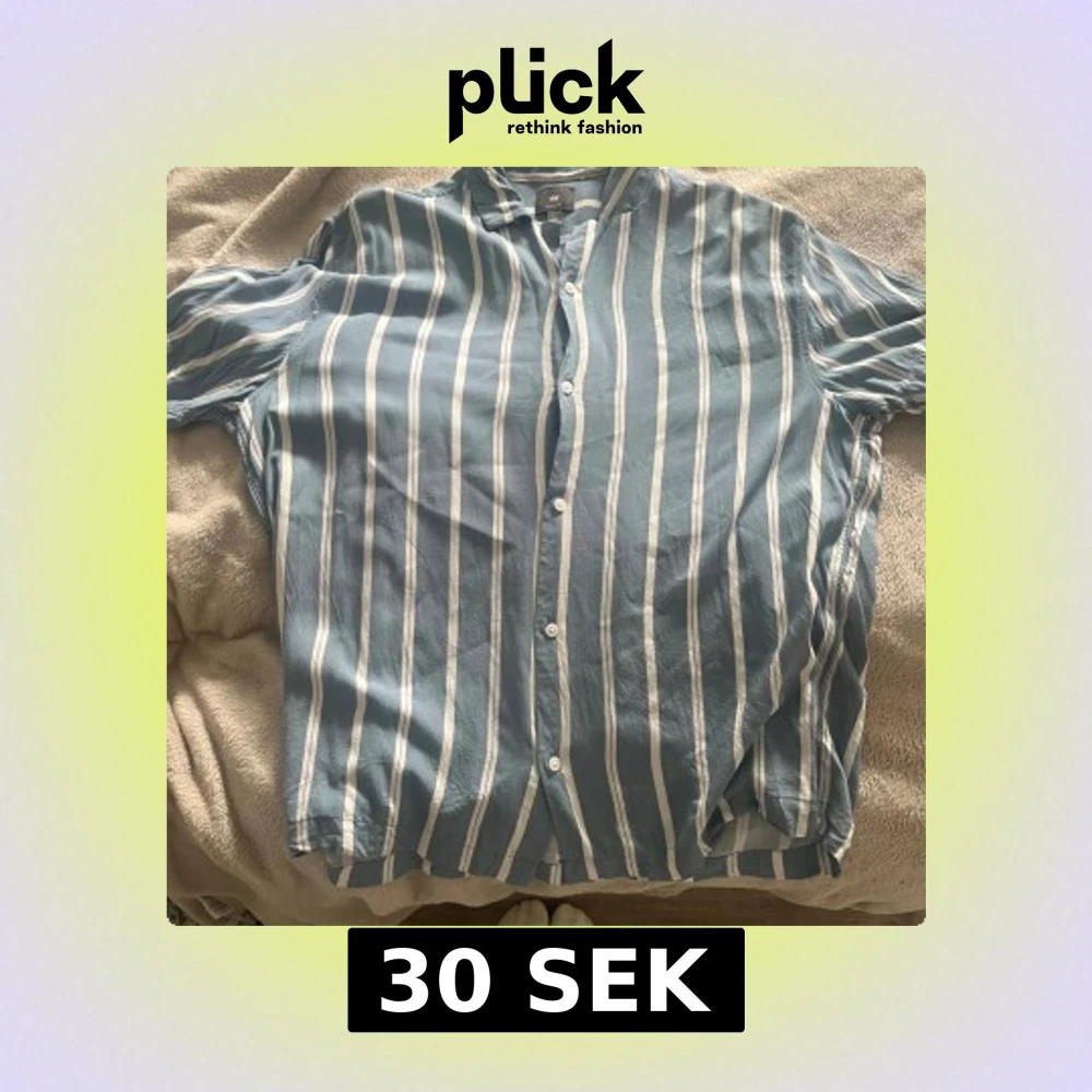Snygg blå skjorta med vita vertikala ränder från H&M. Skjortan har klassisk krage, knäppning framtill och en relaxed passform. Perfekt för dig som gillar en stilren och fräsch look. Materialet känns lätt och passar bra till varmare dagar.